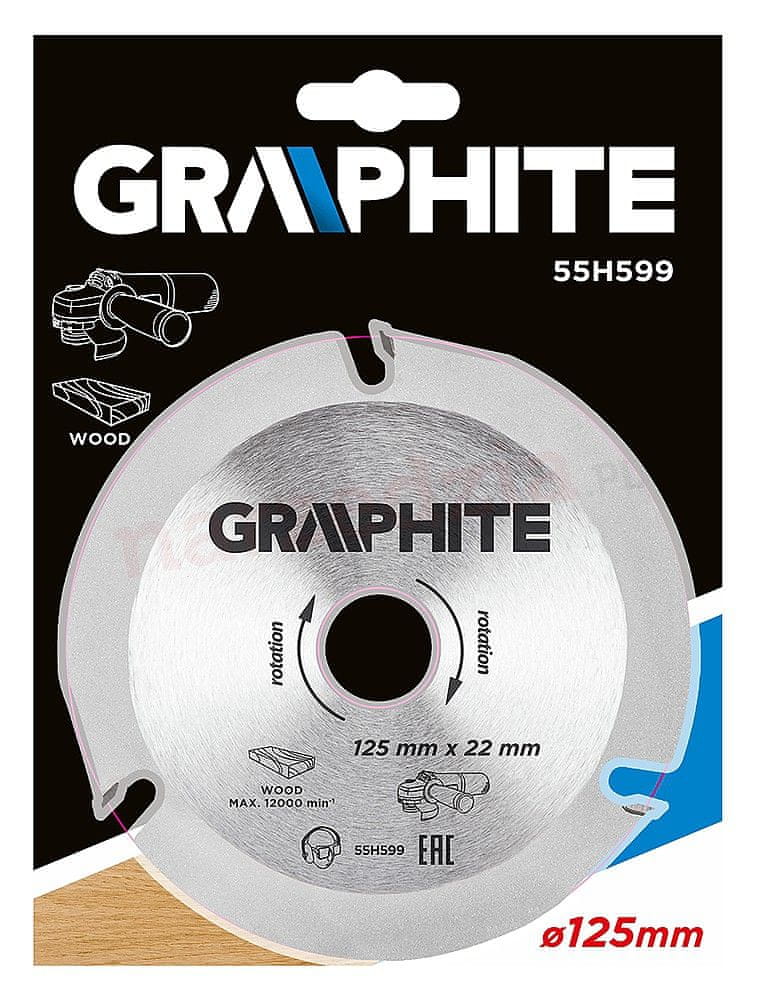 GRAFITNI rezalni disk za les z zunanjim premerom 125 mm, izdelan iz manganove jeklene zlitine MN65 z visoko odpornostjo na temperaturo in deformacije.