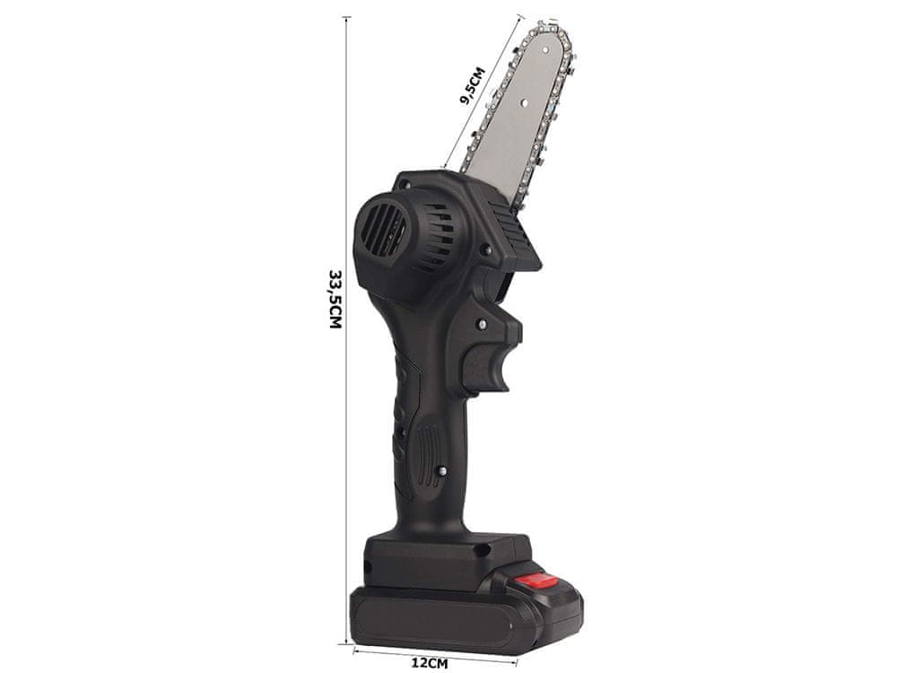 Predstavljamo vam našo vrhunsko akumulatorsko verižno žago z dolžino rezila 10 cm, ki je popolna rešitev za vaše potrebe po obrezovanju in rezanju manjših dreves, vej in lesnih materialov. Ta inovativna verižna žaga vam omogoča enostavno in učinkovito delo brez potrebe po električnem napajanju ali uporabi goriva.