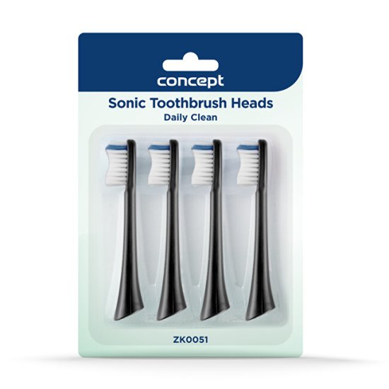 Glava ščetke Daily Clean je primerna za vsakodnevno globinsko čiščenje. Prilagojena je za zobe odraslih in vam bo pomagala doseči bolj zdrave zobe, dlesni in sijoč nasmeh. Glave so popolnoma združljive z modeli Concept ZK500×. Zahvaljujoč sistemu pritrditve click-in lahko glave hitro in preprosto zamenjate z nežnim počepom. Z nakupom kompleta ZK0051 dobite 4 nadomestne glave za ščetko Daily Clean, ki vam bodo zadostovale za 1 leto uporabe.
