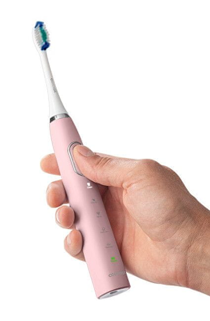 Zvočna zobna ščetka zagotavlja zelo učinkovito nego zob in dlesni. Model ZK4012 je prilagojen za zobe odraslih in ponuja nekajkrat večjo učinkovitost kot ročno ščetkanje. Sonično čiščenje zob je primerno za skoraj vse, tudi za ljudi z zobnim aparatom, kronami, lamelami in zobnimi protezami. Učinkovitejše je pri čiščenju med zobmi, uporabljajo pa ga lahko tudi ljudje z občutljivimi zobmi in dlesnimi. Redna uporaba preprečuje parodontalne bolezni ter zmanjšuje rdečico in krvavenje dlesni. Popoln rezultat Sonična zobna ščetka ZK4012 deluje po načelu nežnih ultrazvočnih vibracij. Glava ščetke vibrira s hitrostjo 38 000 vibracij na minuto, kar je optimalna hitrost za popolno odstranjevanje zobnih oblog in hkrati nežno nego dlesni. Razmaknjene ščetine ščetke bolje dosežejo prostore med zobmi in se lotijo tudi madežev na sklenini. Načini čiščenja Ščetka je opremljena s 5 načini čiščenja: CLEAN za vsakodnevno čiščenje in učinkovito odstranjevanje zobnih oblog, SENSITIVE za nežno čiščenje občutljivih zob in dlesni, WHITE za odstranjevanje površinskih madežev z zobne sklenine za doseganje sijoče belega nasmeha, GUM CARE za učinkovito čiščenje dlesni in MASSAGE za nežno masažo s pulzirajočimi vibracijami. Zobna ščetka ima spominsko funkcijo, tako da bo ob vsakem novem čiščenju samodejno na voljo način, ki ste ga uporabili nazadnje. Omogoča sledenje času Zobna ščetka ZK4012 je opremljena s pametnim časovnikom, ki spremlja čas čiščenja. Nastavljen je na 2 minuti, ki jih za umivanje zob priporočajo zobozdravniki. Časomer je razdeljen na 4 časovne intervale po 30 sekund, tako da imate natančen nadzor nad dolžino čiščenja vsakega dela ustne votline. Zamenljive glave Osnovni paket vključuje dve zamenljivi glavi ščetke: Daily Clean za vsakodnevno čiščenje in Sensitive za občutljive zobe in dlesni. Zahvaljujoč sistemu click-in lahko glavi zamenjate hitro in enostavno z nežnim klikom. Da bi ohranili visoko raven učinkovitosti čiščenja, priporočamo, da glave zamenjate vsake 3 mesece. Doma in na potovanjih S praktičnim potovalnim kovčkom boste imeli zobno ščetko vedno higienično shranjeno in pri roki. Lahko jo vzamete s seboj, kjer koli jo potrebujete. Kakovostna izdelava Sonično zobno ščetko ZK4012 odlikujeta sodoben dizajn in kompaktna oblika, zaradi katere odlično sede v roko. Nudi zaščito IPX7, zato jo lahko sperete pod tekočo vodo. Zobna ščetka je opremljena z visokokakovostno Li-Ion baterijo, ki se polni z indukcijskim polnilnikom.