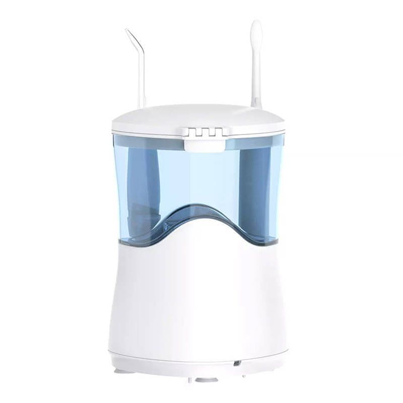 Vključeno Stacionarni irigator Standardna konica x3 Konica za odstranjevanje zobnih oblog Ortodontski vrh Parodontalna konica Konica za čiščenje jezika Sonična zobna ščetka Proizvajalec Nicefeel Model FC163 Bela barva Prostornina rezervoarja za vodo 600 ml Vhodna napetost 100–240V AC 50/60Hz 18W moči Hitrost vrtenja 1250–1700 rpm 10-stopenjska regulacija tlaka Nizek tlak: ≤ 30 psi; Srednje: 40–70psi; Visoko: 78–125psi; Pretok vode ≥ 290 ml/min Raven hrupa Do 75 dB