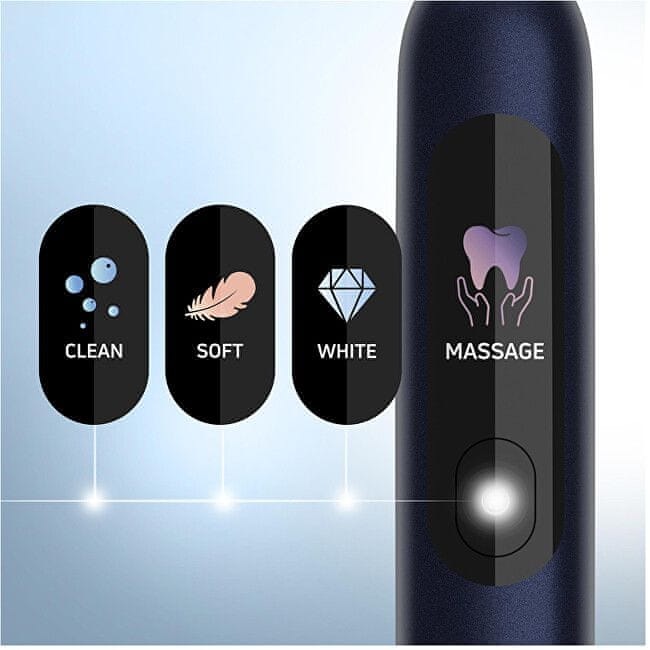 Modna in zmogljiva sonična zobna ščetka z digitalnim zaslonom in do 38 000 udarci na minuto zagotavlja temeljito čiščenje zob in nego dlesni. Zaradi senzorja pritiska, tehnologije Quadpacer in dolge življenjske dobe baterije zagotavlja profesionalno raven ustne higiene tudi v domačem okolju.