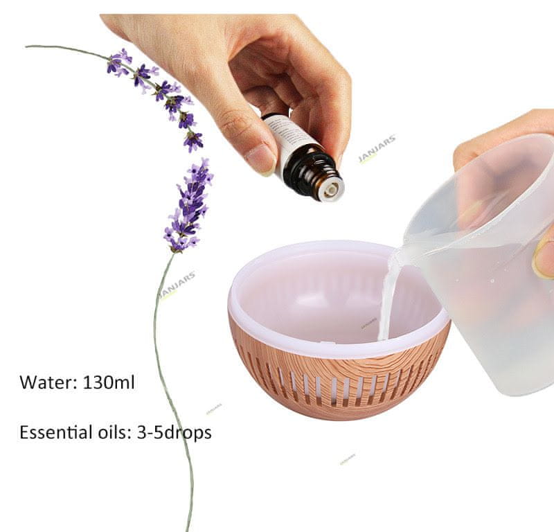 V difuzorju lahko uporabite eterično olje. Olje mora biti 100% naravno. V rezervar kapnite od 3–4 kaplice eteričnega olja. Ne uporabljajte sintetičnih eteričnih olj!