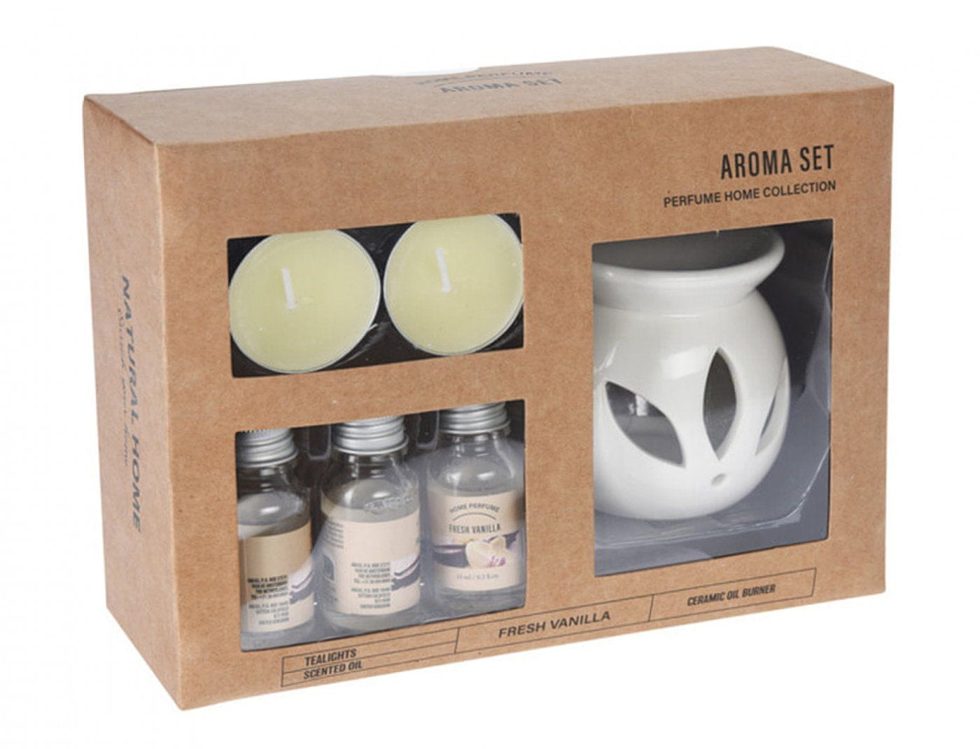 HOMESTYLING Komplet Aromalampa 8x8cm + dišavno olje + čajna sveča Vanilla