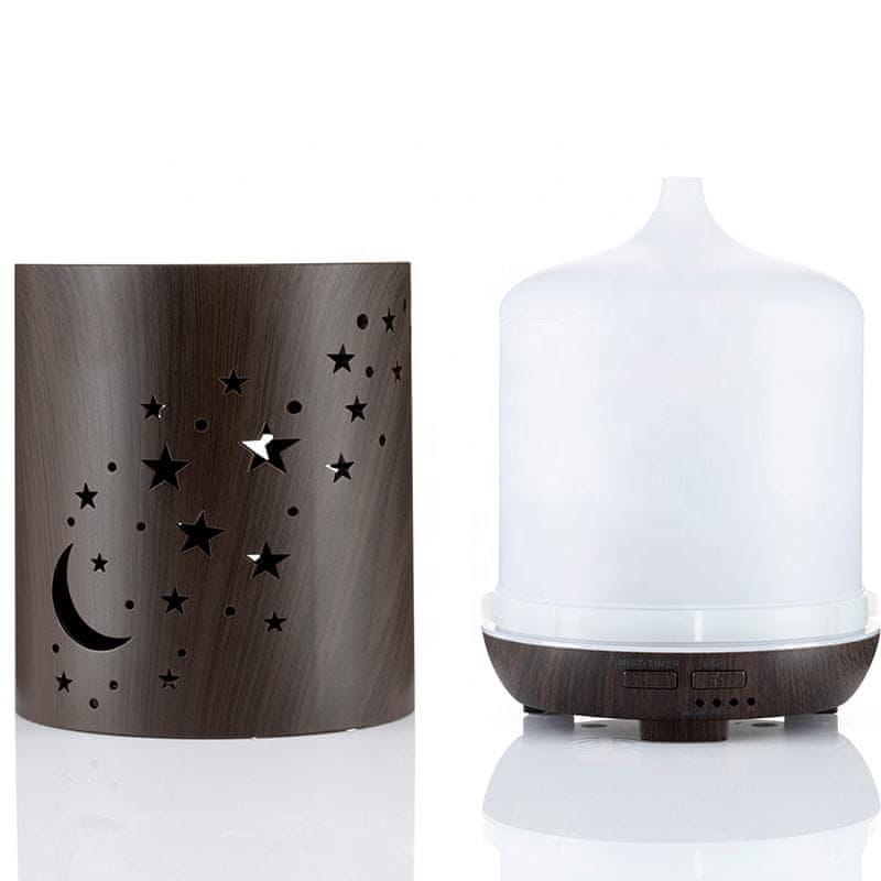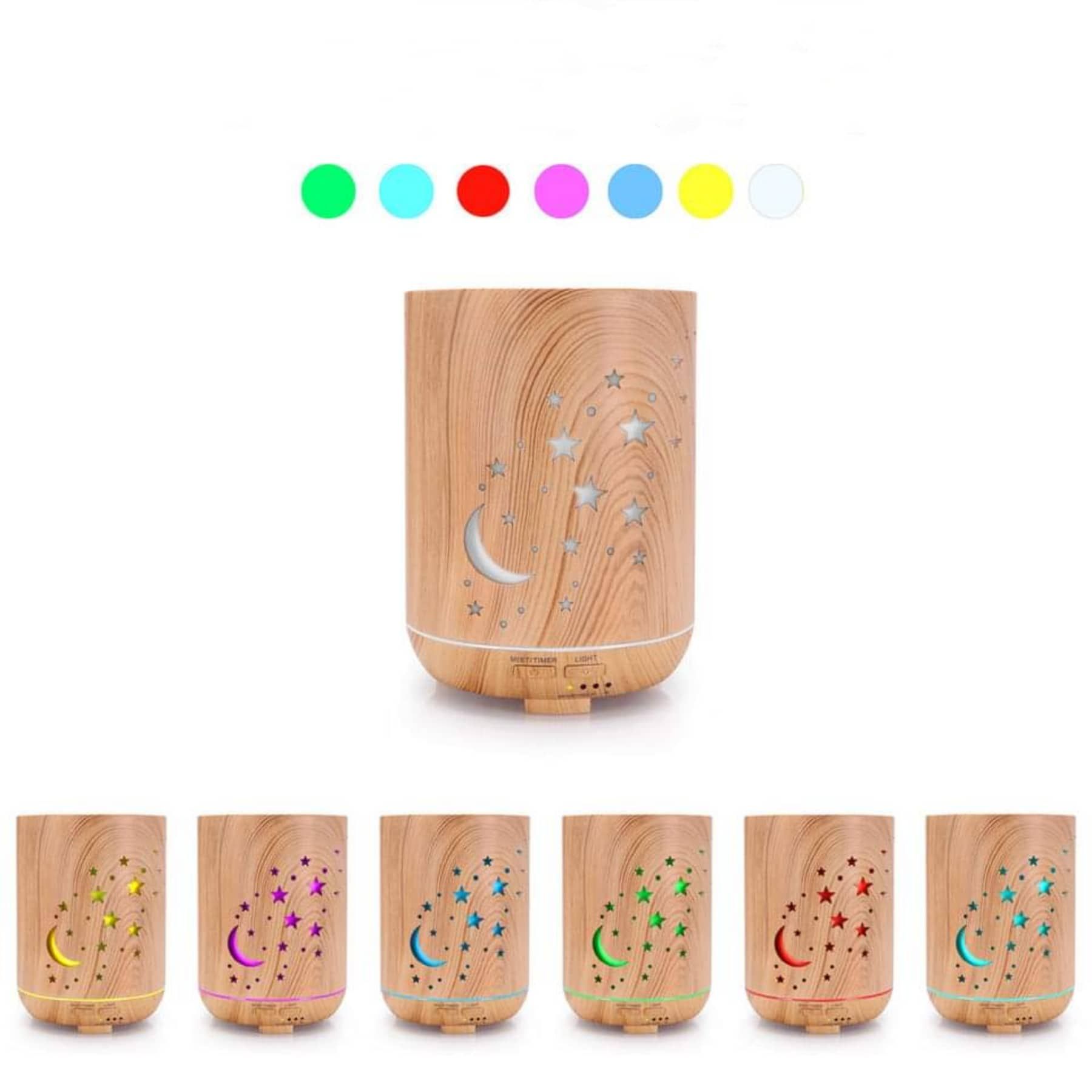 Vlažilec in difuzor Star & Moon z nočno svetlobo, ki spreminja barvo, ustvarja subtilno, pomirjujočo in sproščujočo hladno vodno meglico, ki je popolna za vsak dom.
