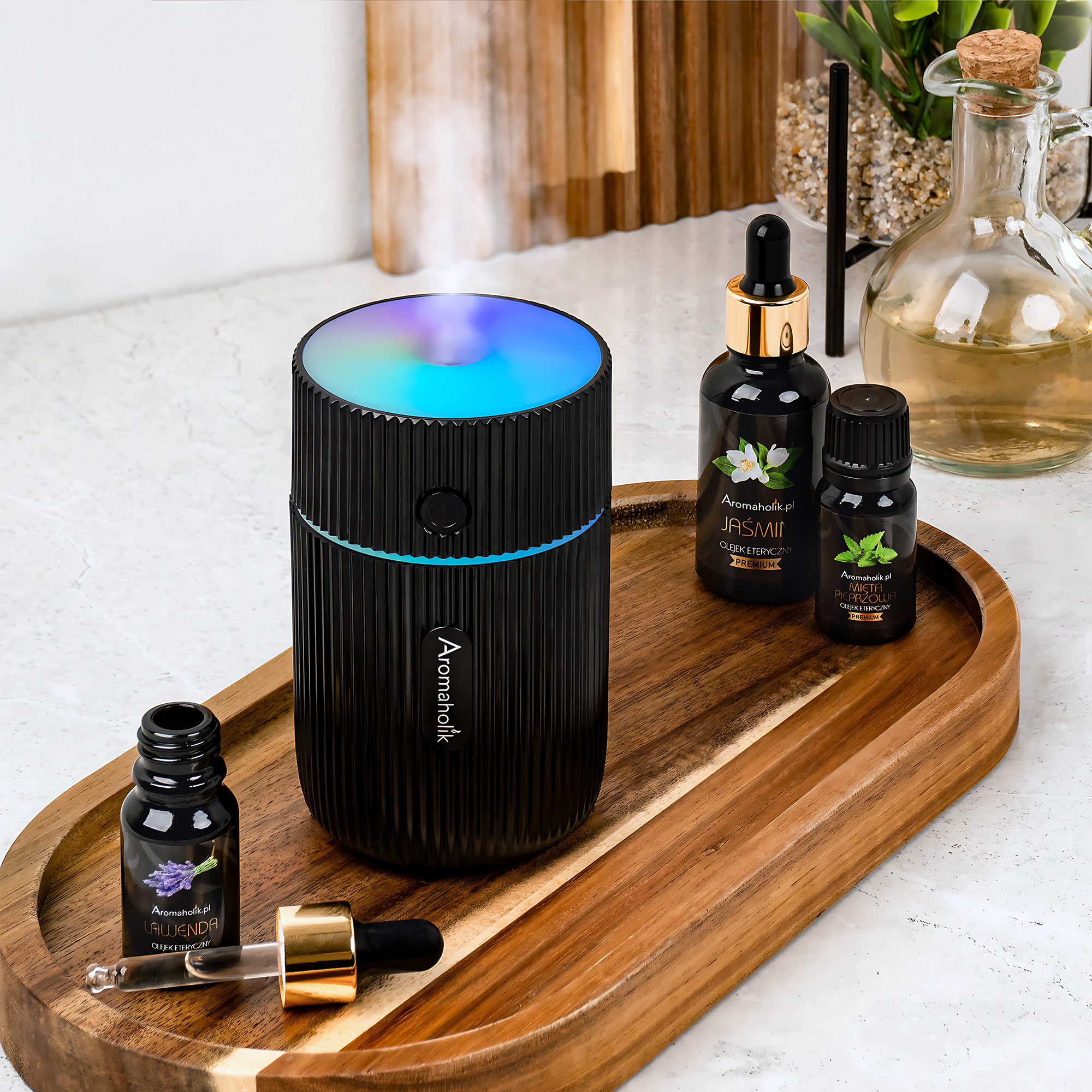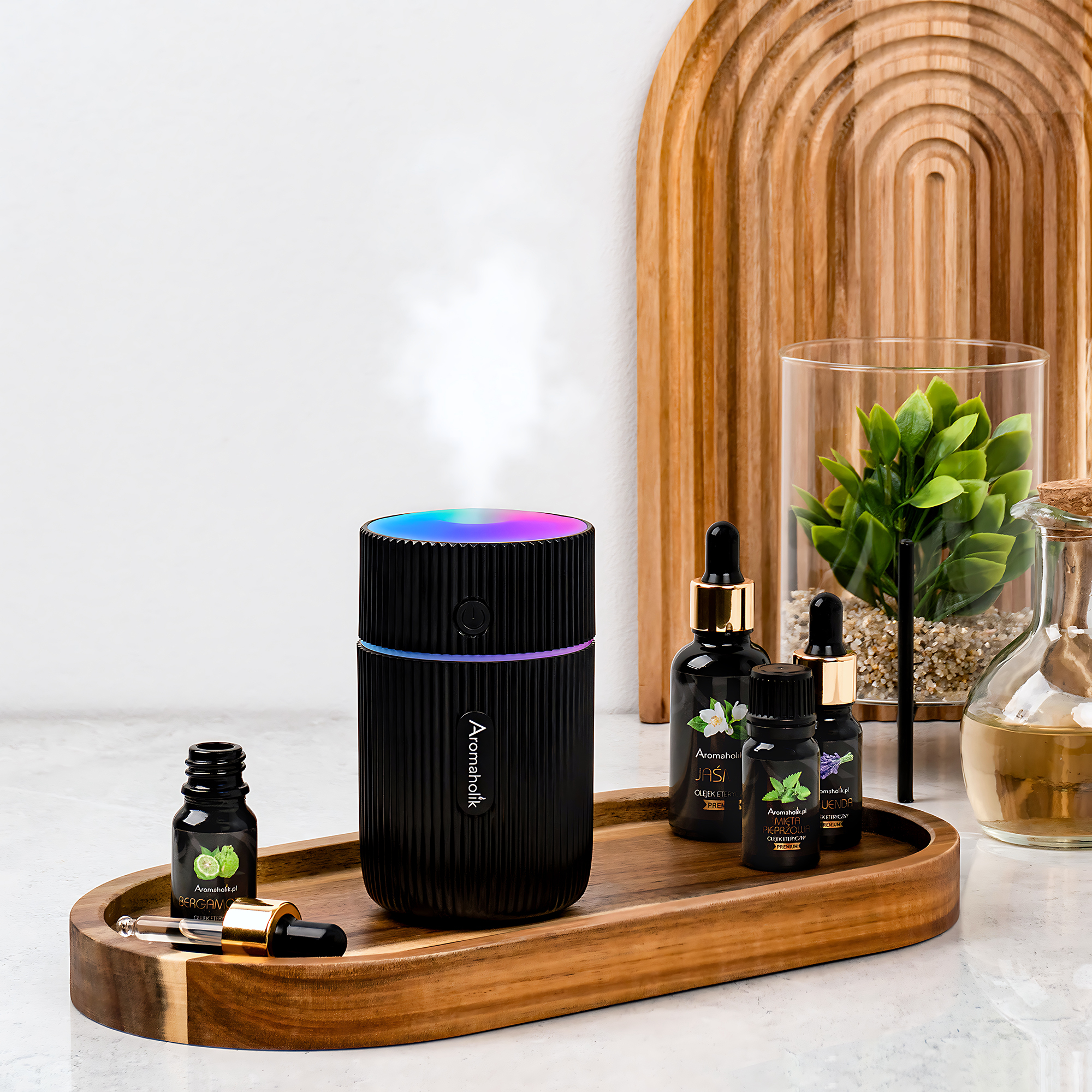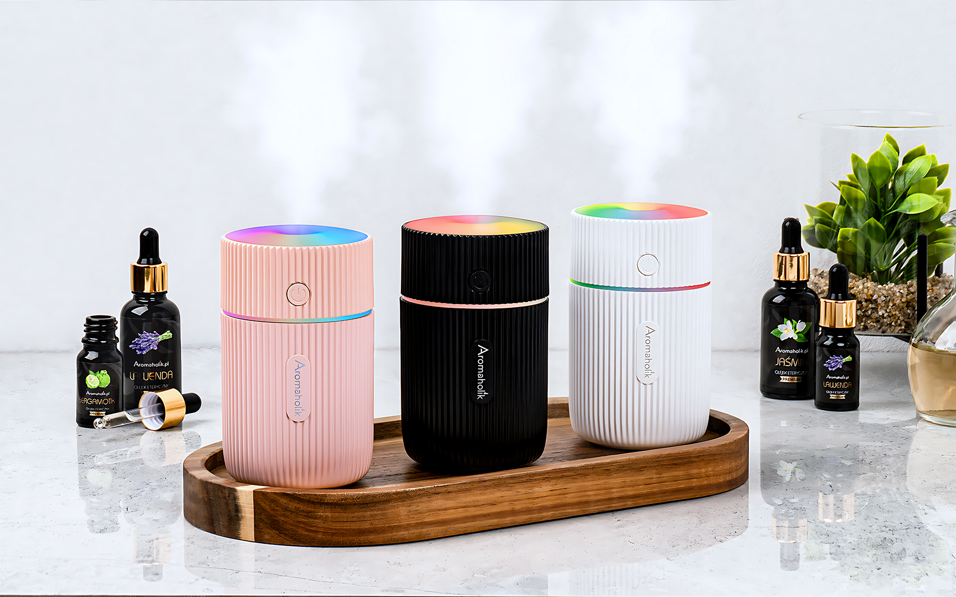 D Doziranje olja – Naprava je prilagojena za uporabo z olji Aromaholik, ki so topna v vodi in ne mašijo kanalov.