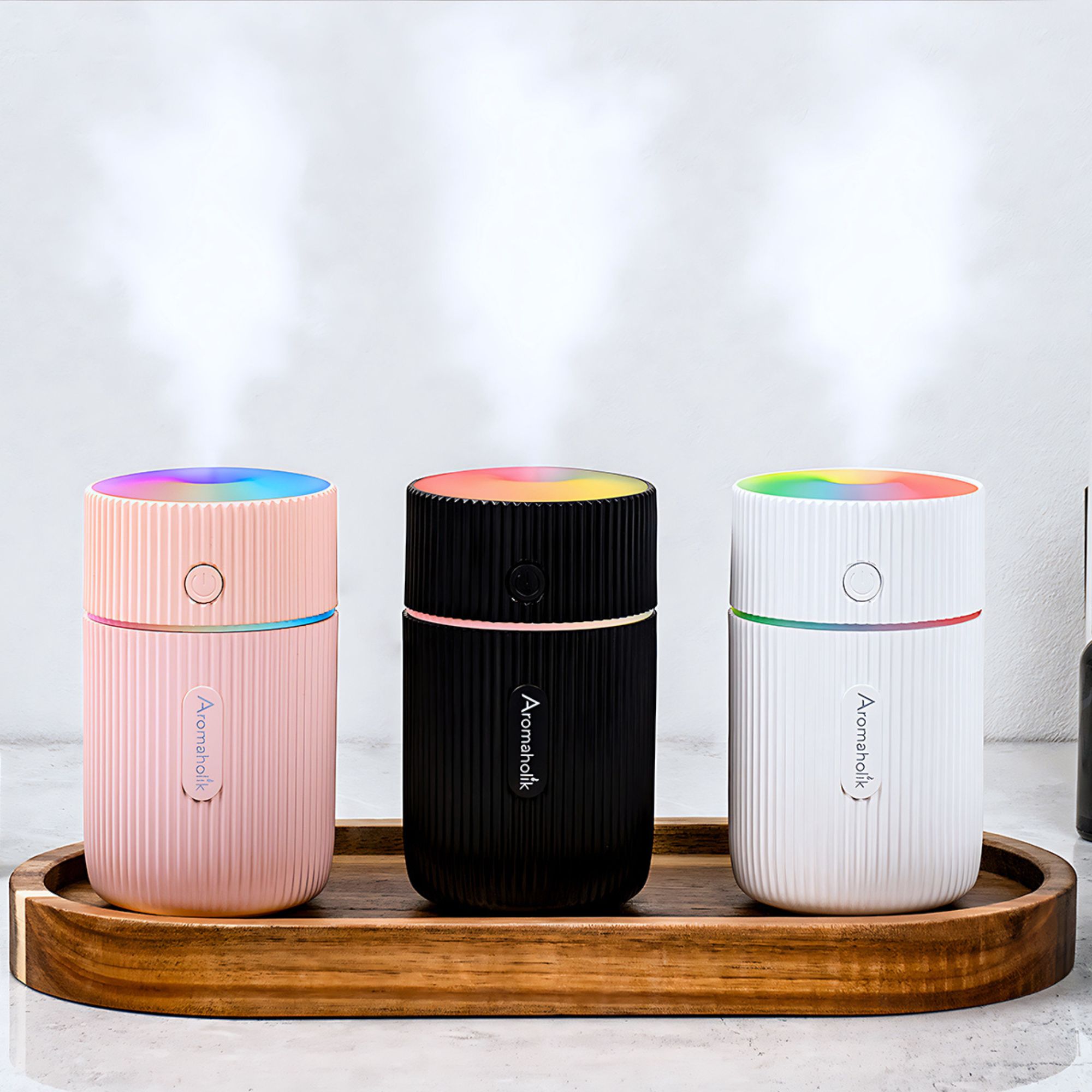 Vlažilec zraka INTENSA™ (roza) – tih, kompakten in eleganten difuzor z barvno LED osvetlitvijo, ustvarjen za aromaterapijo in izboljšanje kakovosti zraka.