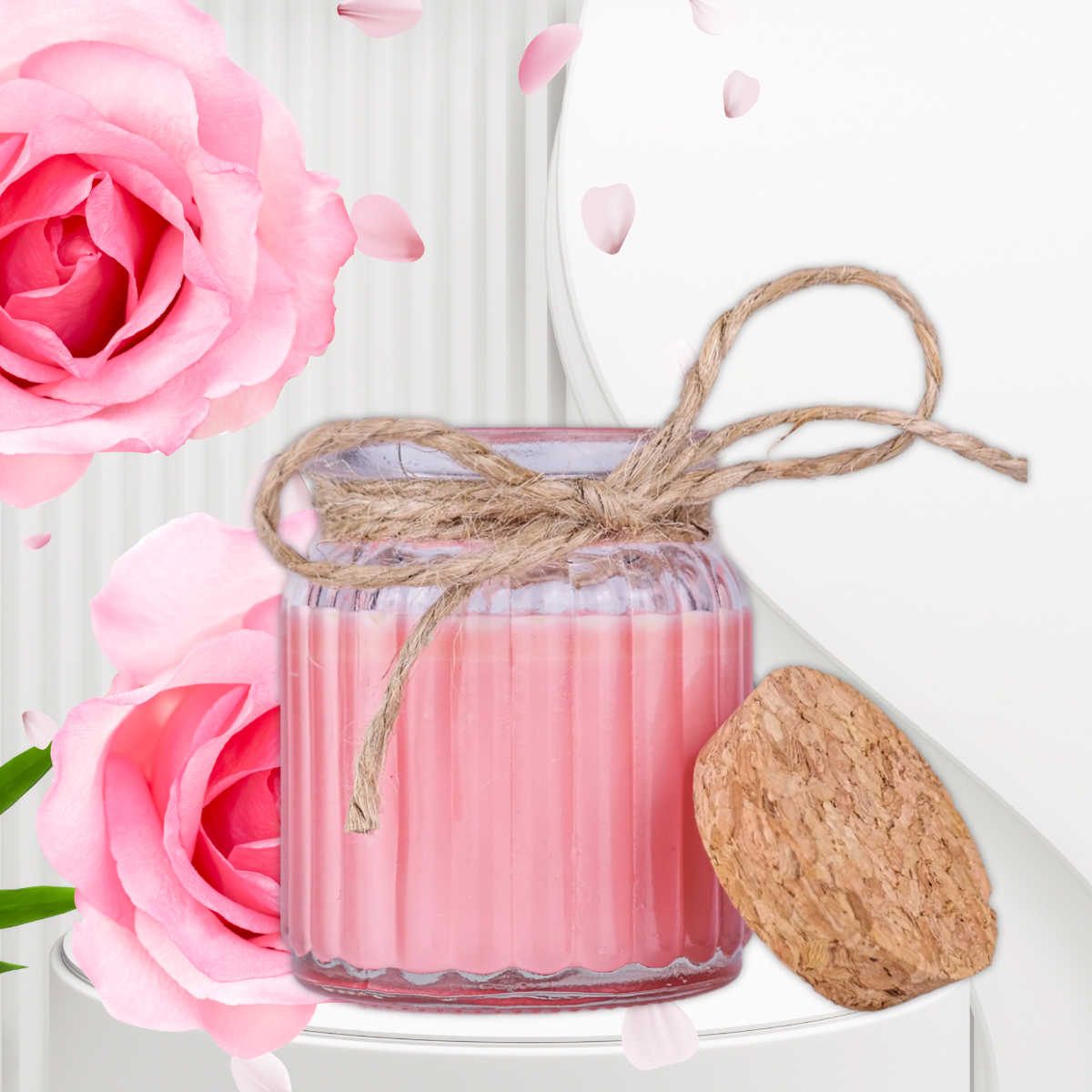 Sojina vrtnica – ročno izdelana sveča iz naravnega sojinega voska, ki vas bo ogrnila z nežno svetlobo in vonjem vrtnice.