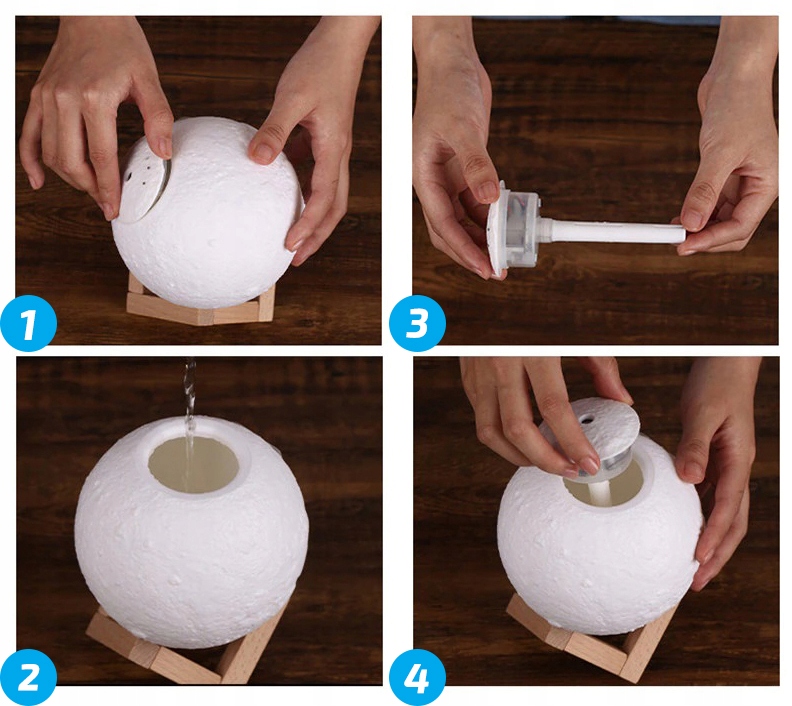 Odprite zgornji pokrov. Nalijte čisto vodo ali vodo z nekaj kapljicami eteričnega olja