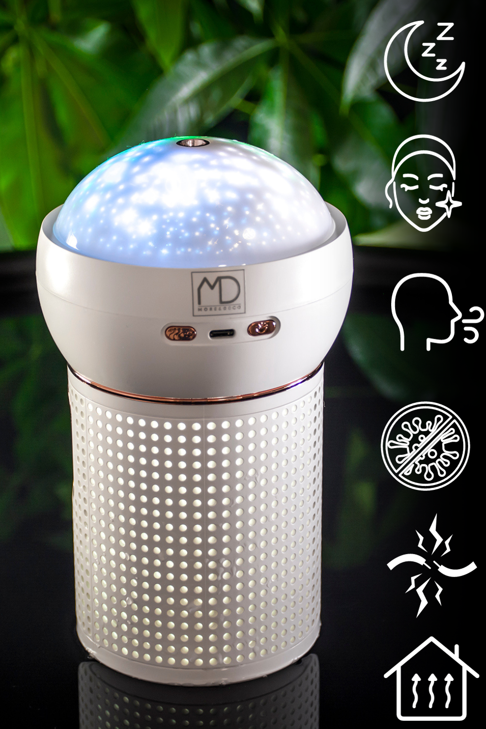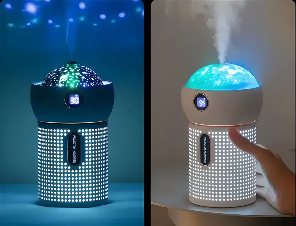 ⚫ Potopite se v oazo svežine in udobja z našim sijočim projektorjem – vlažilnikom zraka VANTI vlažilnikom zraka. Naša naprava ne le odpravlja suh zrak, temveč tudi lepo osvetli vaš prostor in blagodejno vpliva na vaše zdravje, vlaži vašo kožo in olajša dihanje.