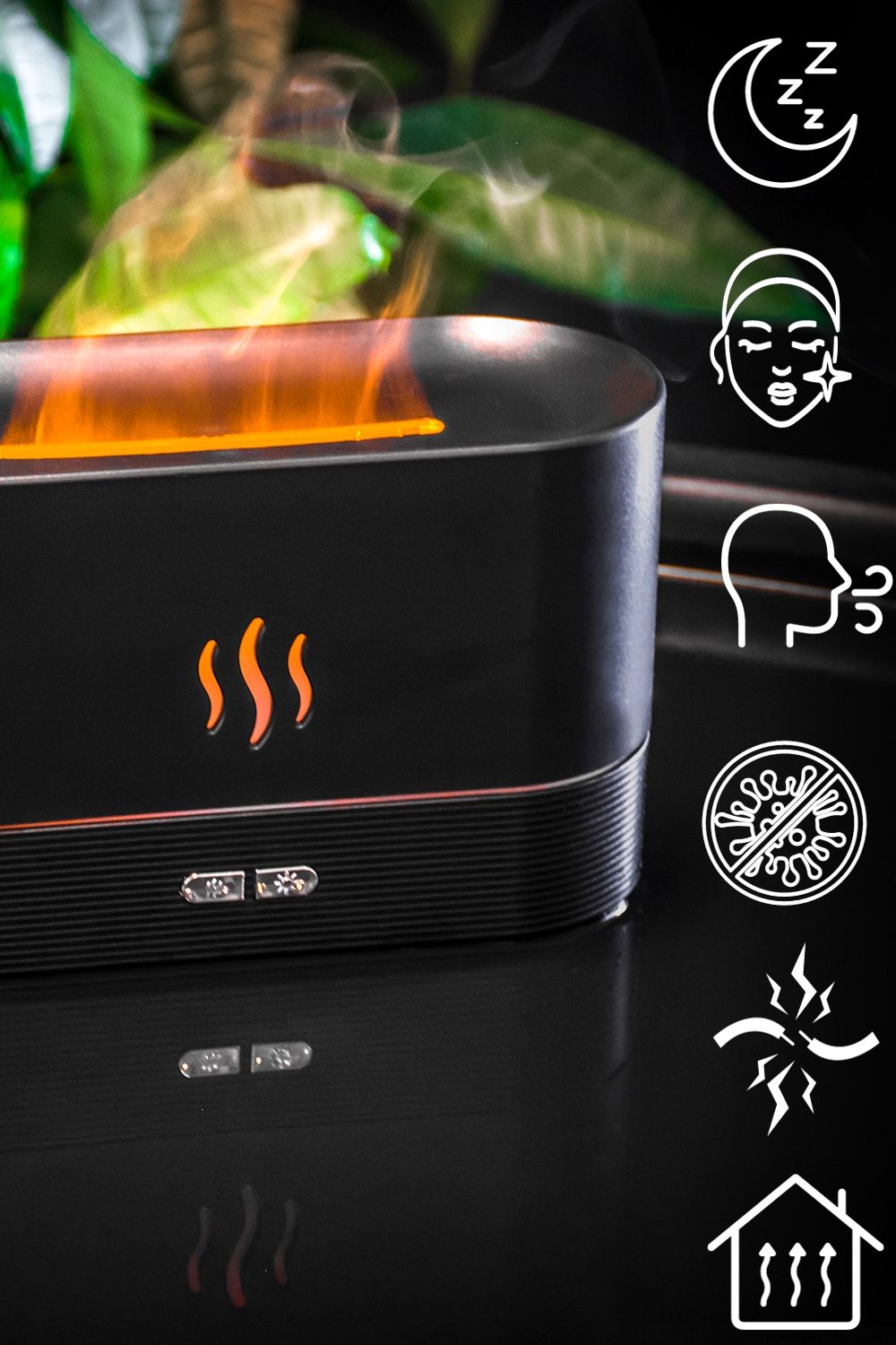 ⚪ VLAŽILEC ZRAKA DIFUZOR KAMIN Z UČINKOM OGNJA ČRNI AROMATERAPIJA