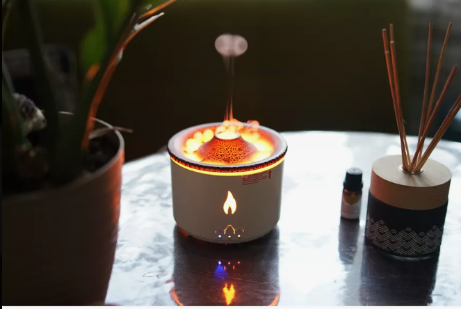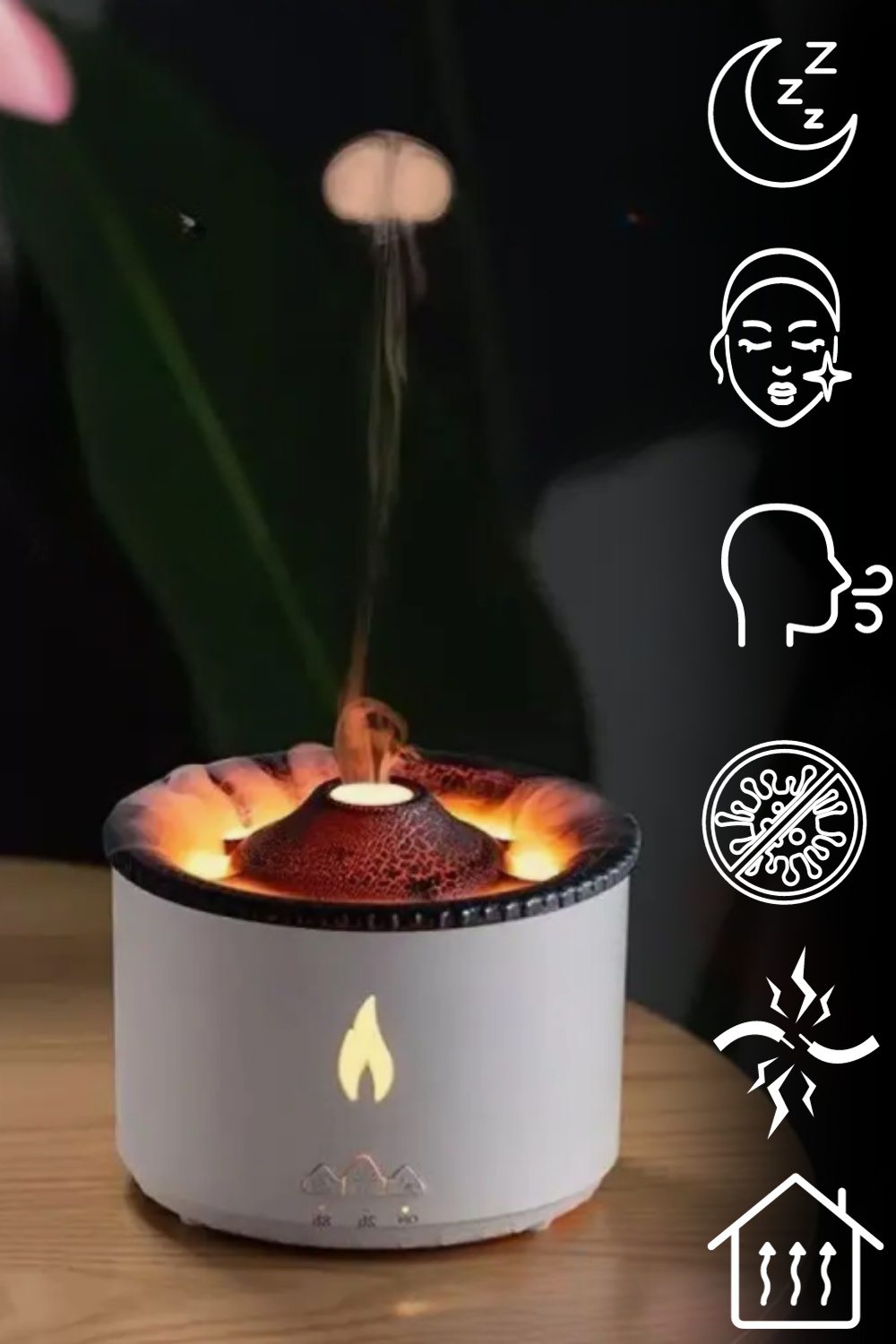 5️⃣ SVETILKA ZA RAZPOLOŽENJE Naprava 2 v 1, vlaži in osvetljuje zrak, ki posnema atmosfero vulkana.
