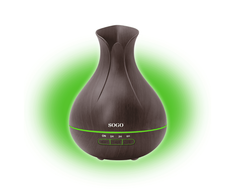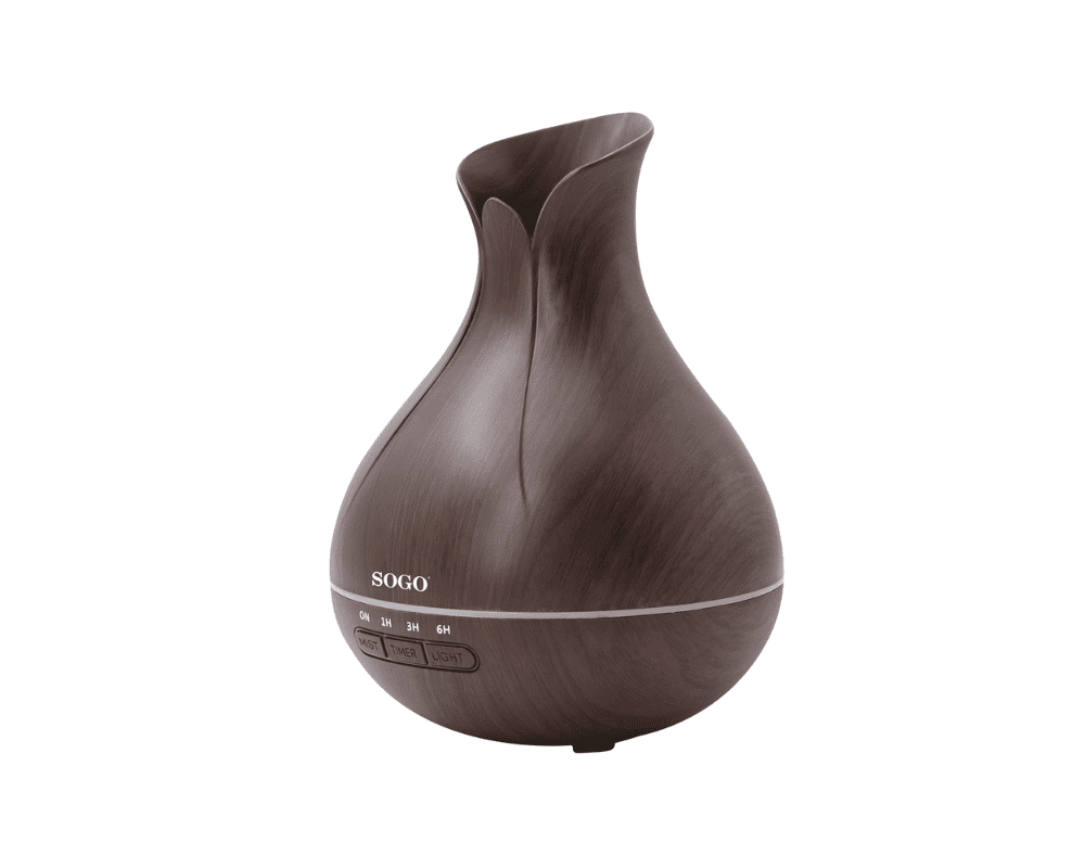 Aroma difuzor Sogo AIR-SS-21721 v elegantni ukrivljeni obliki z diskretno rjavo imitacijo lesa. Ni le uporaben pripomoček, temveč tudi okrasni element, ki se poda v vsako sobo.
