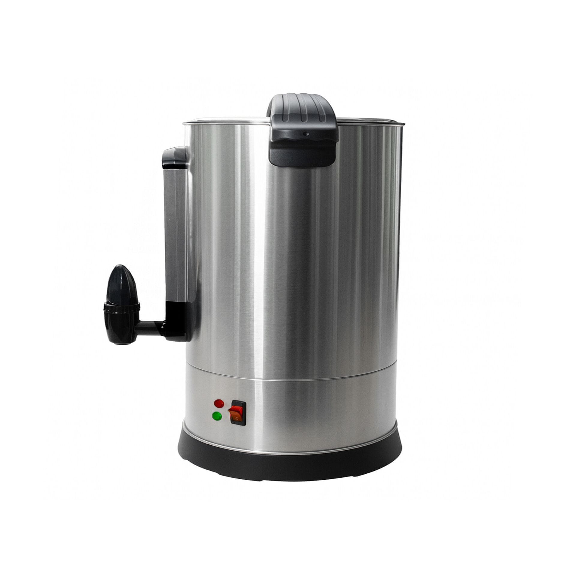 Z močjo 1500 W se naprava hitro segreje in brez težav pripravi večjo količino napitkov. Zaradi prostornine 6 l je ta grelnik pijač idealen za obrate z visoko povpraševanjem, kot so tržnice, dogodki in druge gastronomske prireditve.
