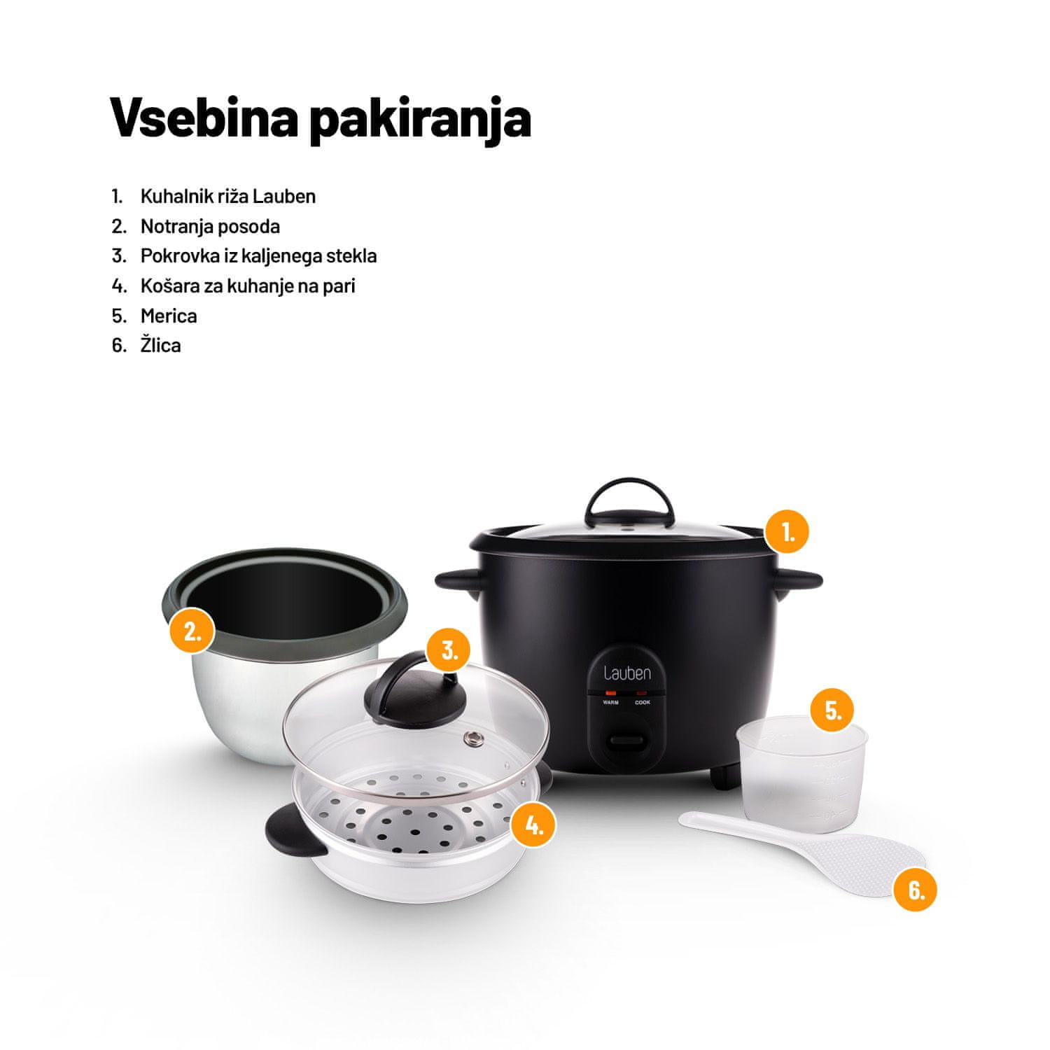 - Zaradi priloženega kovinskega parnika je primeren za kuhanje vseh vrst riža, juh, kaš, stročnic in zelenjave v pari