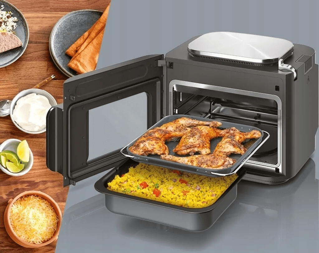 • Priročnost – vse v enem aparatu: aparat brezhibno združuje večfunkcijski štedilnik, pečico in konvekcijsko pečico v en vsestranski aparat, s čimer poenostavi vašo kuhinjo in razširi vaše možnosti pečenja.