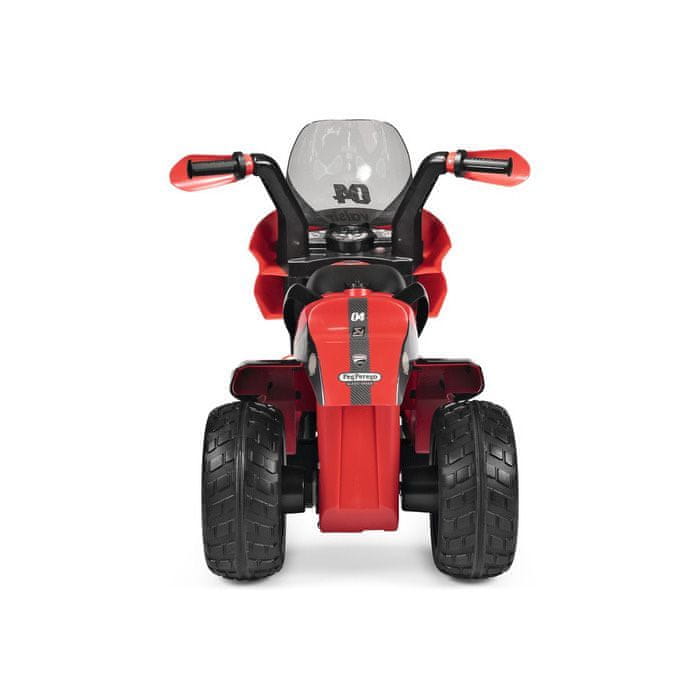 Peg Perego Ducati Desmosedici EVO otroški motor, rdeč, je namenjen tako uporabi v stanovanju kot tudi zunaj na različnih terenih. Zavoro in plin ima na istem pedalu. Celoten opis