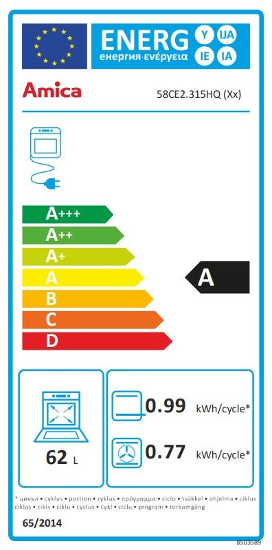Pečica je zahvaljujoč svoji energijski učinkovitosti umeščena v energijski razred A. Nižja poraba energije pomeni tudi nižje stroške energije, zato lahko pripravite večje količine hrane brez skrbi, da bi bili računi previsoki.