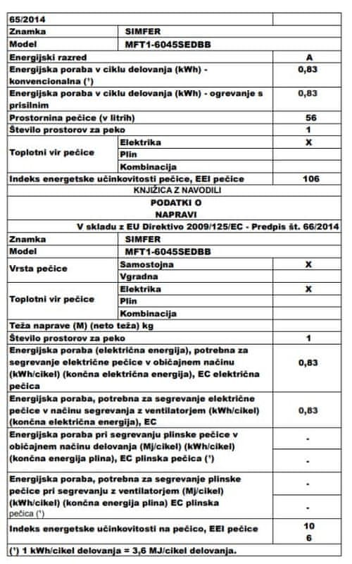 Steklokeramični štedilnik Simfer 6045 SEDBB združuje 4 steklokeramična kuhalna mesta in 56-litrsko pečico. Slednja ima 5 funkcij delovanja.