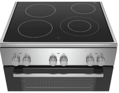 Bosch prostostoječi štedilnik s štirimi električnimi kuhališči se med drugim ponaša s 66-l pečico, indikatorjem preostale toplote za vsako kuhališče in halogensko osvetlitvijo.