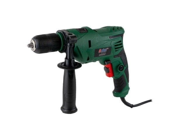 Udarni vrtalnik z močjo 900 W iz ASIST ima aluminijast menjalnik, bakreno navitje motorja, levo in desno prestavljanje ter elektronski nadzor hitrosti. Vrtalniku sta priložena kovček in komplet kovinskih svedrov. Uporabili ga boste doma in v delavnici. Ponuja vam dva načina dela in udoben oprijem zaradi ročaja Softgrip. Dobavljen z dodatnim ročajem in globinskim omejevalnikom.