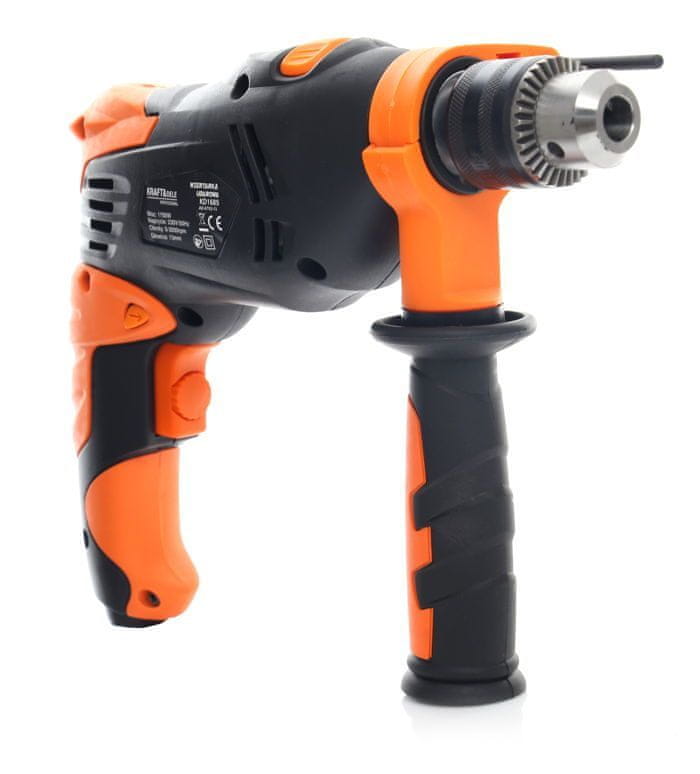Električno udarno kladivo Kraft & Dele KD1685 1700W je namenjeno za udarno vrtanje v zid, beton in kamen ter za vrtanje v kovino, keramiko, les in plastiko. Glavni ročaj je izdelan iz posebnega nedrsečega materiala za udoben oprijem. Ta različica je opremljena z dodatnim stranskim ročajem. Glava je iz plastike.