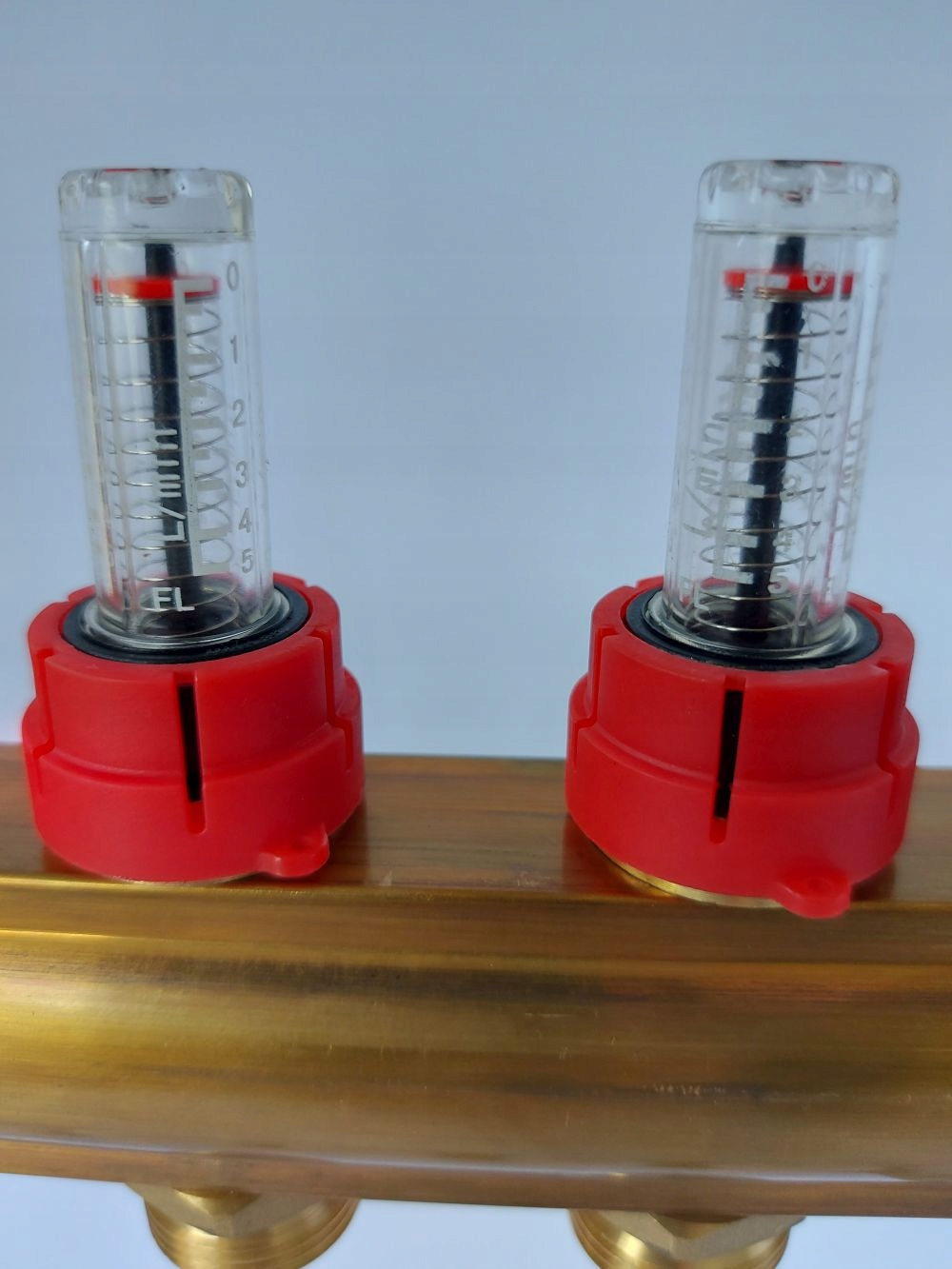 Element, nameščen na dovodnem nosilcu, se uporablja za merjenje pretoka tekočine na posameznih tokokrogih in za natančno regulacijo pretoka. Rotameter je ustrezno skaliran (5 litrov/min), da omogoča odčitavanje dejanskega pretoka tekočine.