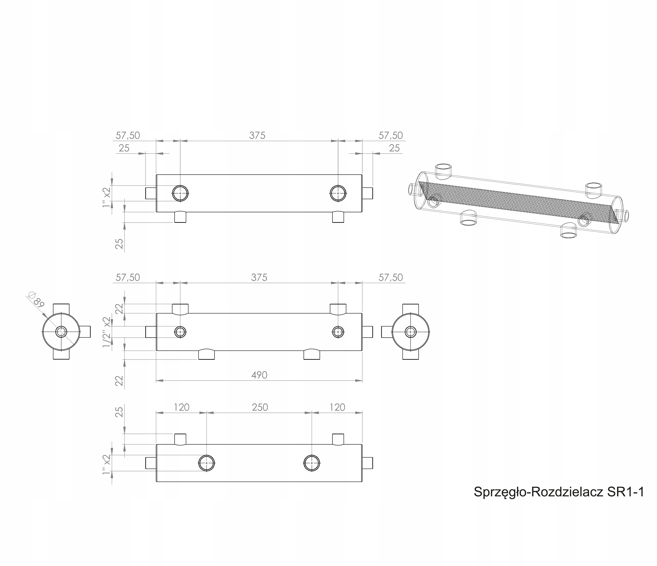 HIDRAVLIČNI TOPLOTNI TERMIČ Z RAZDELILNIKOM, MOČ 60 kW, IZOLIRAN DN25 (1), SR 1–1