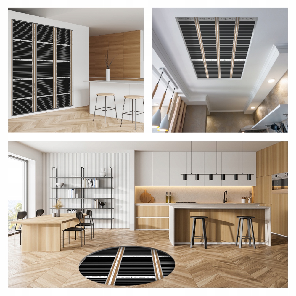 - 30 cm široka folija, nameščena v sistem mavčnih plošč iz mavčnih plošč, je idealna za stensko ali stropno ogrevanje.