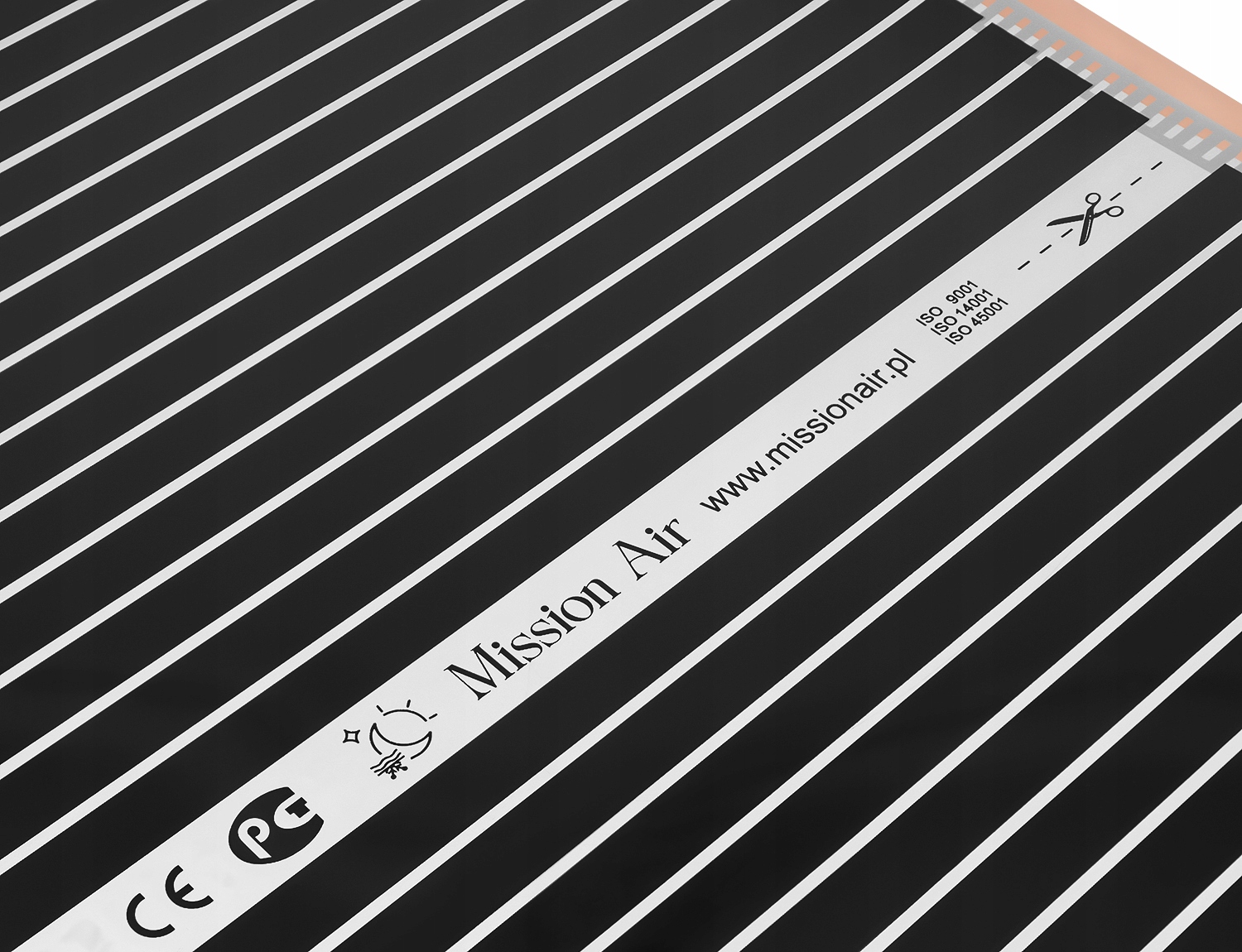 za ogrevanje zraka. Uporaba infrardeče folije pri talnem ogrevanju nam omogoča, da dosežemo tako priljubljen učinek toplih tal. Sodobna PTC tehnologija Infrardeče grelne folije Mission Air® iz serije Black Silver imajo tehnologijo PTC, ki je edinstvena v svojem razredu ! PTC deluje na principu povečevanja upornosti vezja z naraščajočo temperaturo. To posledično povzroči zmanjšanje toka, ki teče skozi grelni element.
