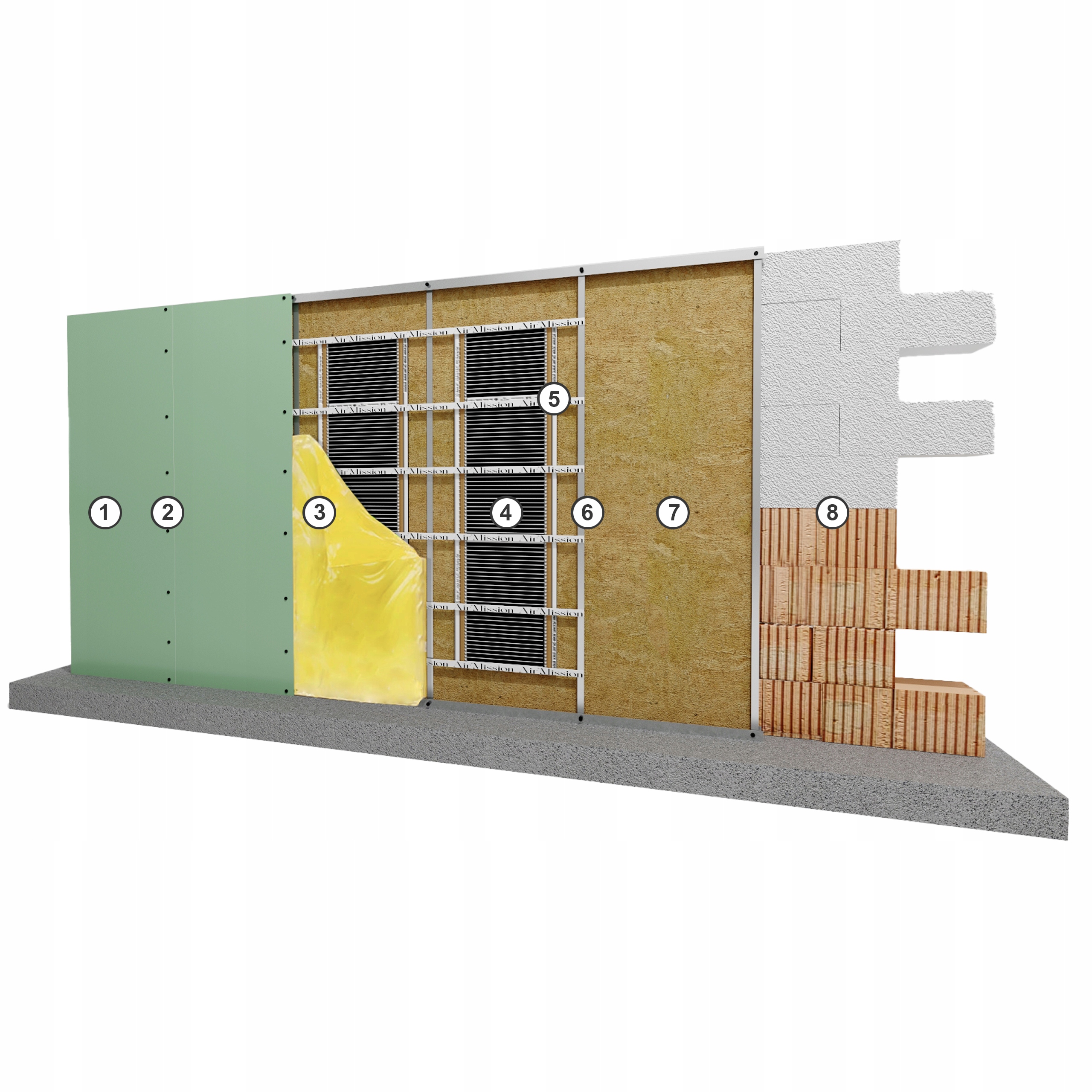 - 30 cm široka folija, nameščena v sistem mavčnih plošč, je idealna za stensko ali stropno ogrevanje.