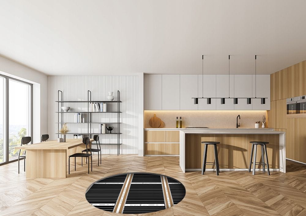 v primerjavi z drugimi ogrevalnimi sistemi. Ni nam treba čakati, da peč segreje vodo, ki nato sprošča toploto v prostor. Folija se segreje praktično takoj po začetku delovanja,
