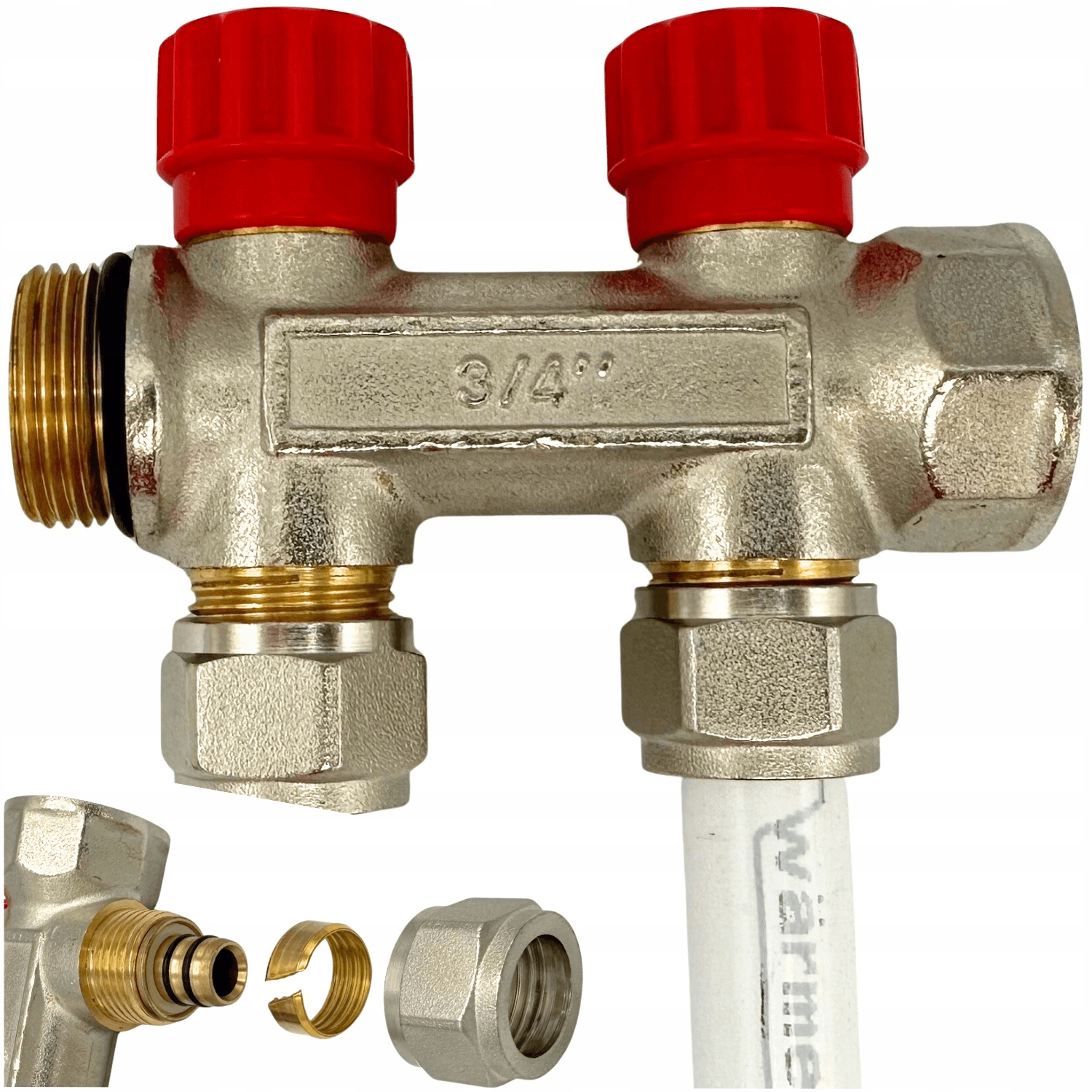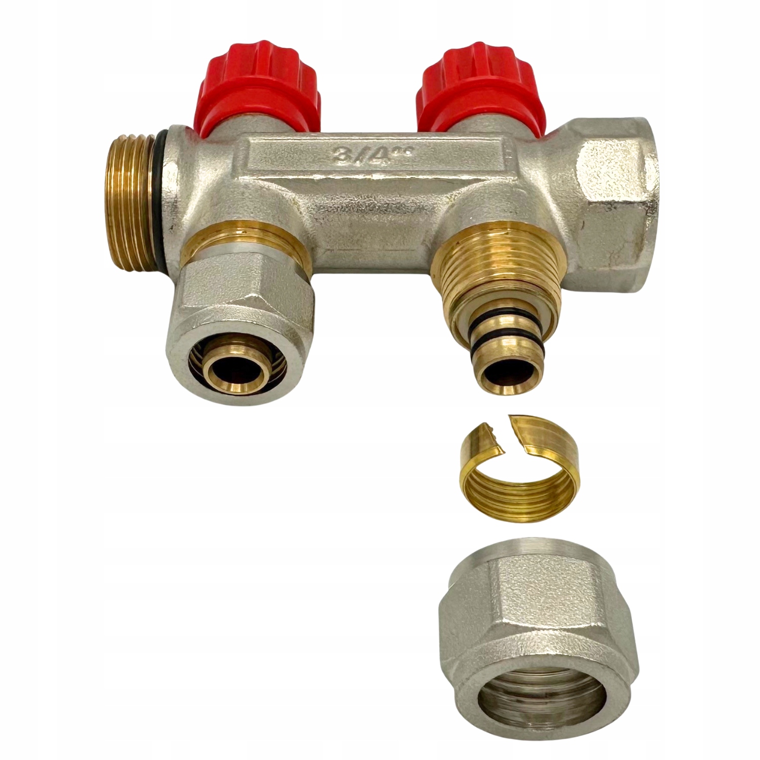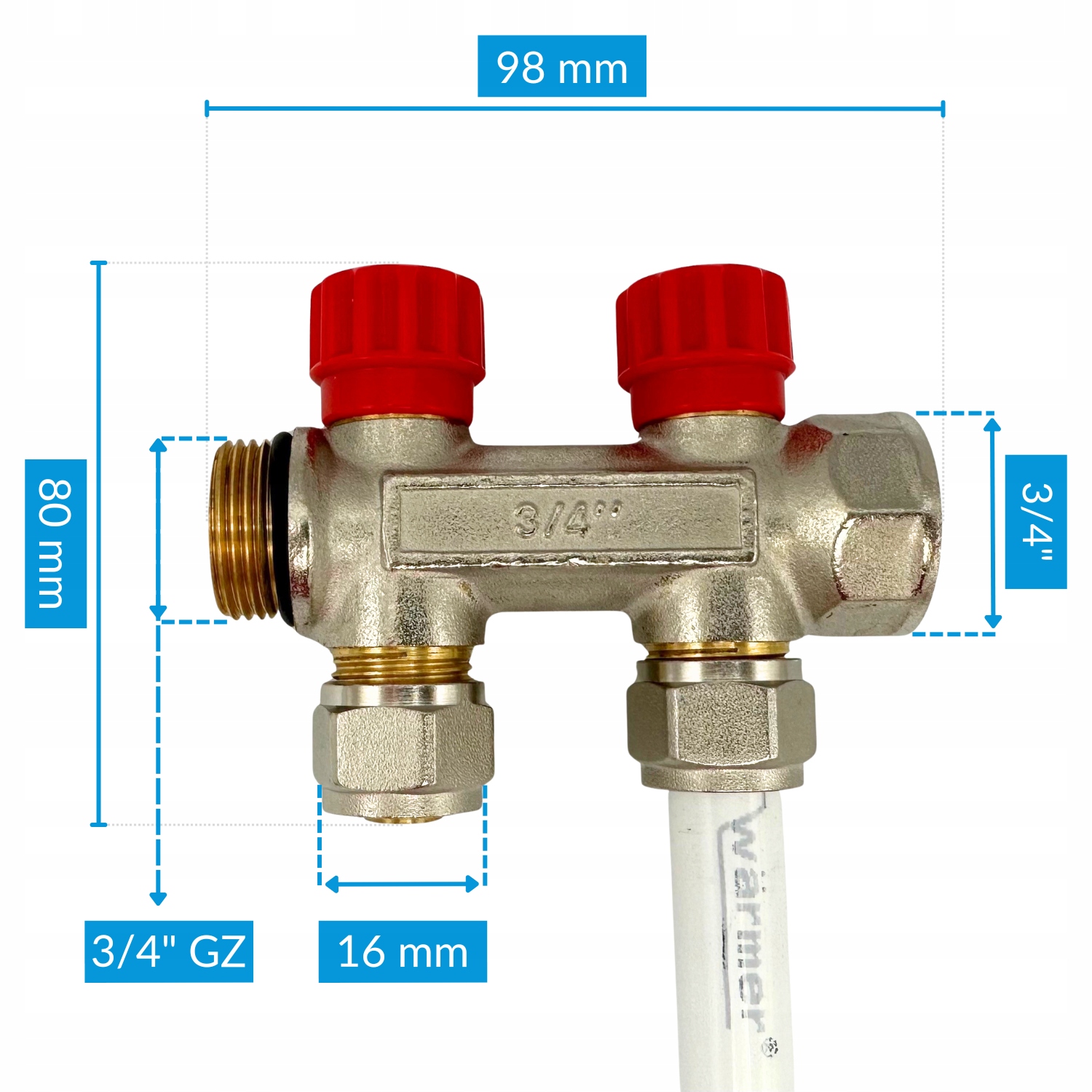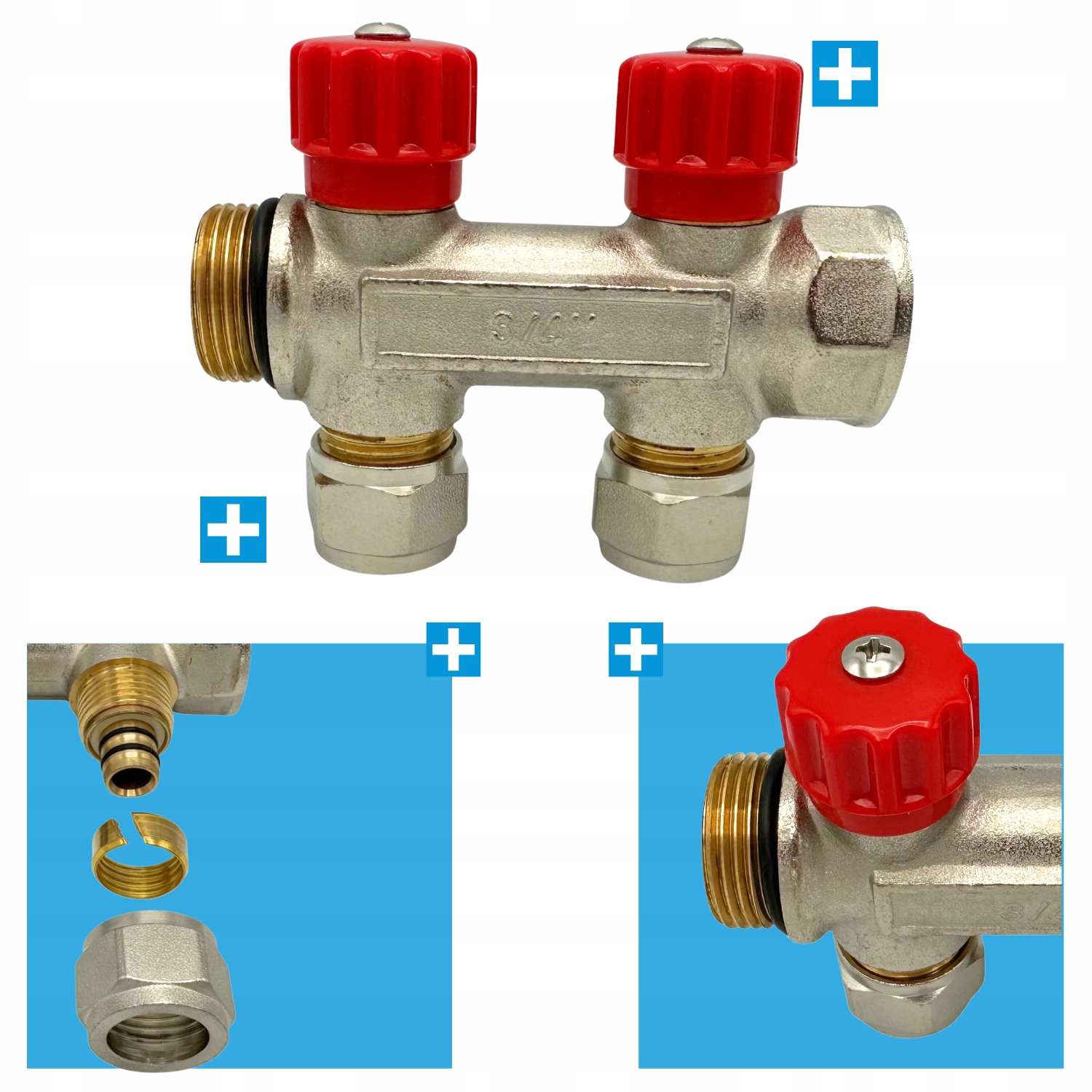 Zahvaljujoč uporabi 3/4-palčnega priključka na vhodu in dveh izhodov s premerom PEX 16 mm , omogočajo učinkovito porazdelitev vode ali toplote v različne cone stavbe. Razdelilnik je kombiniran z zapornim ventilom.