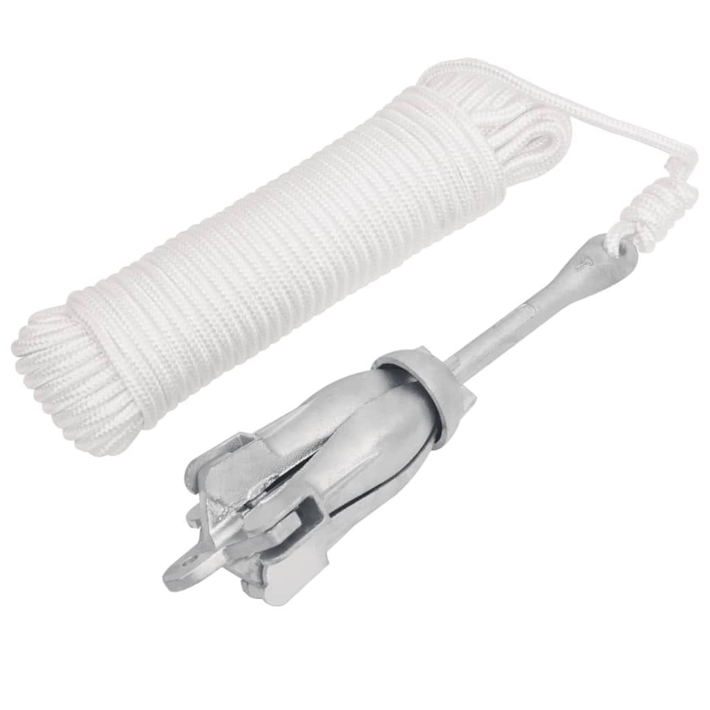 Vidaxl Zložljivo sidro z vrvjo srebrno 3,2 kg temprano železo