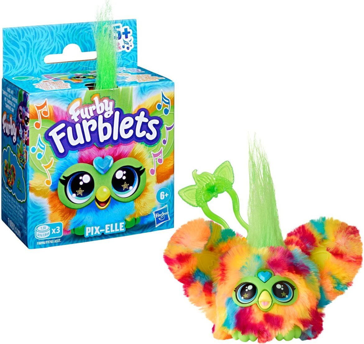 Tisnite gumb za srce, da Pix-Elle zaigra svoje edinstvene melodije v slogu videoigre. Vsak od šestih Furbletov ima edinstven glas in značaj, ki se ujema z glasbenim slogom, ki ga predstavlja. Imajo več kot 45 zvočnih odzivov in se lahko usklajujejo, skupaj pojejo pesmi in sodelujejo z veliko igračo Furby. Z odstranljivo sponko lahko Furbleta preprosto pripnete na nahrbtnik ali torbo. Za delovanje so potrebne 3 kosi baterij LR44 (priložene).