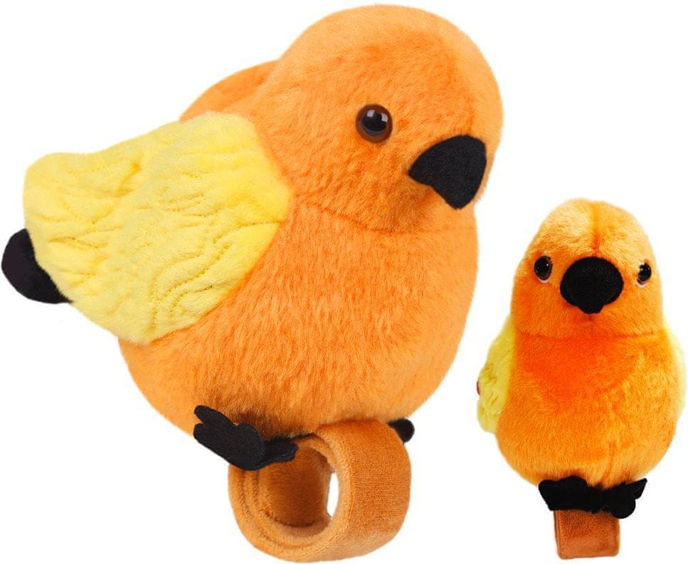 Družabna ptička, ki zna peti in ponavljati vaše besede. Stisnite ptičje krilo in ptica bo ponovila vse, kar boste rekli. Stisnite drugo krilo in ptica vam bo zapela. Ptička posadite na roko in ga zapnite z zapestnico s samozapenjanjem. Za delovanje so potrebne 3× baterije LR44 (priložene).