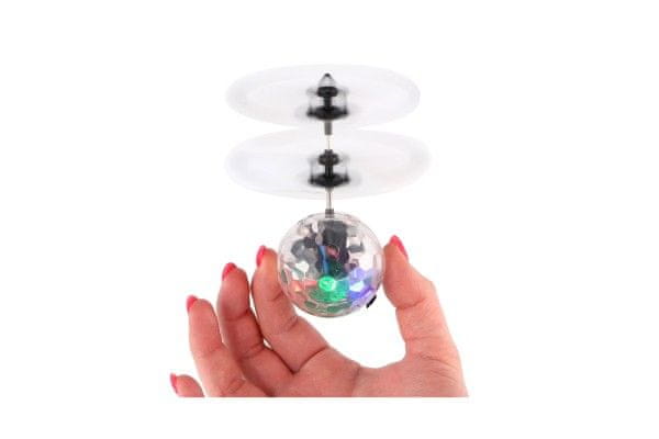 Krogla za helikopter z vgrajenim senzorjem ponuja možnost upravljanja njegovega leta z dlanjo. Otroci lahko s svojimi dlanmi določijo višino leta. Med letom se žoga prižge. Ne mečite je v zrak, temveč jo samo položite na roko. Paketu je priložen tudi kabel USB za hitro polnjenje. Dimenzije paketa 16 × 19 × 6 cm. Primerno za otroke, stare 14 let in več.