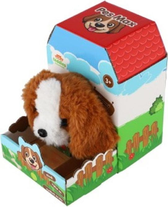 Prikupen pes se sprehaja naprej in nazaj ter proizvaja realistične zvoke lajanja. Pes je zapakiran v škatli, ki je tudi njegova koča. 2× baterije AA niso vključene. Dimenzije paketa 13 × 19 × 18 cm. Primeren za otroke od 3. leta starosti dalje.