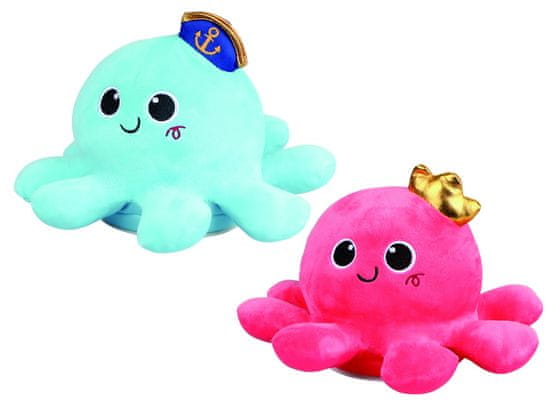 Hobotnica z učinki ponovi, kar ste rekli. Dimenzije 23×23×14 cm. Predal za baterije in stikalo za vklop/izklop sta na dnu. Gumb za aktiviranje na strani hobotnice. Za preklapljanje med funkcijami večkrat pritisnite gumb. Hobotnica se ziblje, pleše in poje, sveti in ponavlja, kar rečete. 3×AA baterije, niso priložene. 2 različici – modra, rdeča.