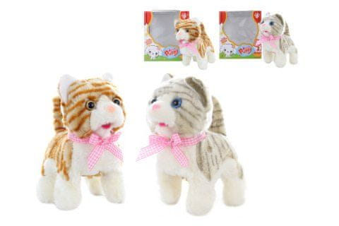 Sprehajalna mačka velikosti približno 14 × 17,5 × 8 cm. Mačka hodi in spušča zvoke. Poganja jo 2 bateriji AA (nista vključeni). Dimenzije paketa približno 16 × 18 × 10 cm. 2 barvi, dobavljeno glede na razpoložljivost na zalogi. Starost 3+