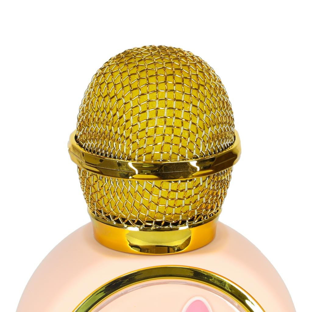 BREZŽIČNI MIKROFON ZA KARAOKE PINK ZAJČEK Roza brezžični mikrofon za otroke: Bluetooth povezljivost – mikrofon lahko povežete s telefonom za prosto predvajanje vaših najljubših pesmi intuitivno upravljanje – gumbi na ohišju omogočajo priročno preklapljanje med pesmicami in nastavljanje glasnosti prisrčen dizajn zajčka – roza mikrofon z zajčkom pritegne pozornost in spodbuja otroke k aktivni zabavi preživetemu petju Tehnični parametri: Material: plastika Barva: roza zlata Izhodna moč: 5 W Dinamični razpon: 40 Hz-18 KHz Različica Bluetooth: 5.1 Podprt format zvoka: MP3 Domet: 10 m Polnjenje: DC 5 V Napajanje: baterija 800 mAh (priložena) Dimenzije mikrofona: 23 cm x 9,5 cm x 4,5 cm Dolžina kabla: 50 cm Dimenzije paketa: 24 cm x 9,5 cm x 5,5 cm Vnesite malo čarobnosti v vsakodnevno zabavo z roza karaoke mikrofonom s srčkanim zajčkom! Mikrofon ima Bluetooth, ki omogoča povezavo telefona ali tablice za predvajanje vaših najljubših pesmi. Poleg tega vam reža za pomnilniško kartico omogoča dostop do vaših najljubših pesmi, ne da bi morali priklopiti druge naprave. Na ohišju so gumbi, ki vam omogočajo priročno prilagajanje glasnosti, menjavo skladb ali vklop in izklop naprave. Mikrofon je zasnovan z mislijo na otroke – je lahek, udoben za držanje in izdelan iz varnih, vzdržljivih materialov. Naprava otroke spodbuja k petju, razvija njihovo ustvarjalnost, samozavest in ljubezen do glasbe. To je odličen način za podporo vokalnih talentov že od zgodnjega otroštva! Vsebina kompleta: Mikrofon USB kabel Izdelek pakiran v kartonsko škatlo.