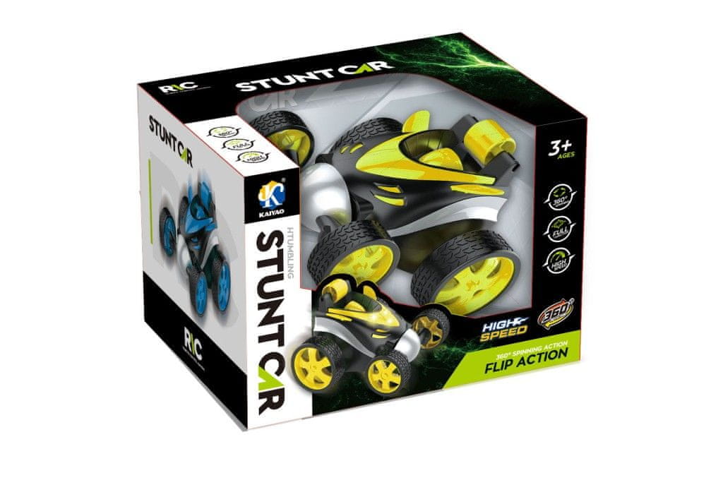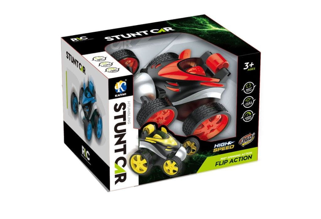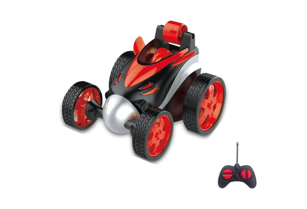 Popolni trik avtomobil, ki ga lahko vozite ne le naprej, nazaj ali vstran, temveč se lahko zelo zabavate z vrtenjem prednjih koles ali vožnjo po zadnjih kolesih. Vožnja je dopolnjena s kul svetlobnimi učinki. Velikost avtomobila 9,5 × 13 × 10,5 cm. Velikost paketa 16×12×11,5 cm. Svinčnikove baterije za delovanje in voznike niso vključene. Avtomobil je na voljo v 4 barvah – zeleni, modri, rdeči in oranžni.