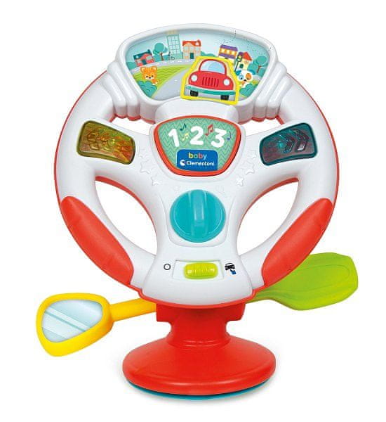 Interaktivni volan, ki bo navdušil vsakega malega voznika. Volan je opremljen s priseskom, s katerim ga je mogoče enostavno pritrditi na ravno površino. Luči LED, številni zvočni učinki, zvoki živali in očarljive melodije spremenijo igro v pravo vožnjo z avtomobilom. Obračajte volan in avtomobil se bo premikal levo in desno ter izdajal zvoke vožnje. S tipko aktivirate dva načina – vklopljen ali izklopljen motor. Gibljiva ogledala in prestavna ročica. Mehansko delovanje otroku pomaga pri razvijanju ročnih spretnosti. Interaktivni volan pomaga otrokom razvijati: vidno zaznavanje, slušno zaznavanje, otipno zaznavanje, zaznavanje telesa, vizualno-manualno koordinacijo in domišljijo. Vključuje baterije: 2×AAA/LR03, samo za predstavitvene namene. Dimenzije izdelka: 20 × 16,5 × 8 cm. Dimenzije paketa: 25 × 18 × 10 cm. Starost: 10 m+