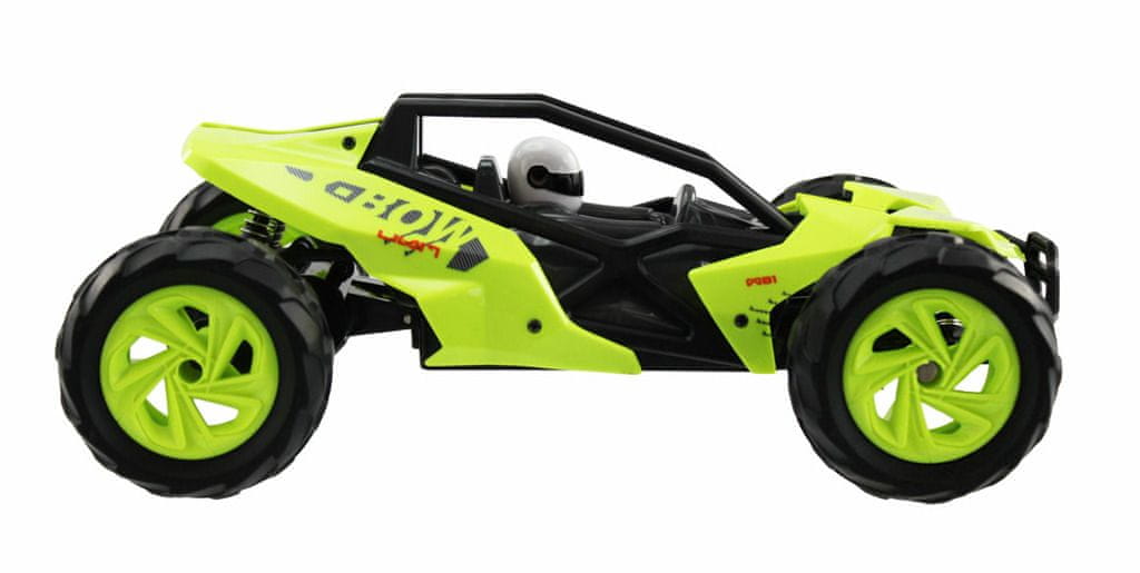 Odlično vodljiv RC Buggy za terensko uporabo. Zmogljiv motor doseže hitrost do 20 km/h. Absorpcijski blažilniki na obeh oseh, realističen videz.