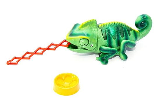 Lov s plazečim se jezikom: pripravite se na akcijski lov! Kameleon je opremljen s funkcionalnim plazečim se jezikom, s katerim lahko „zbira“ majhne magnetne „žetone žuželk“. Preprosto ga usmerite proti plenu, pritisnite gumb in opazujte, kako se njegov jezik izstreli in pritegne plen.