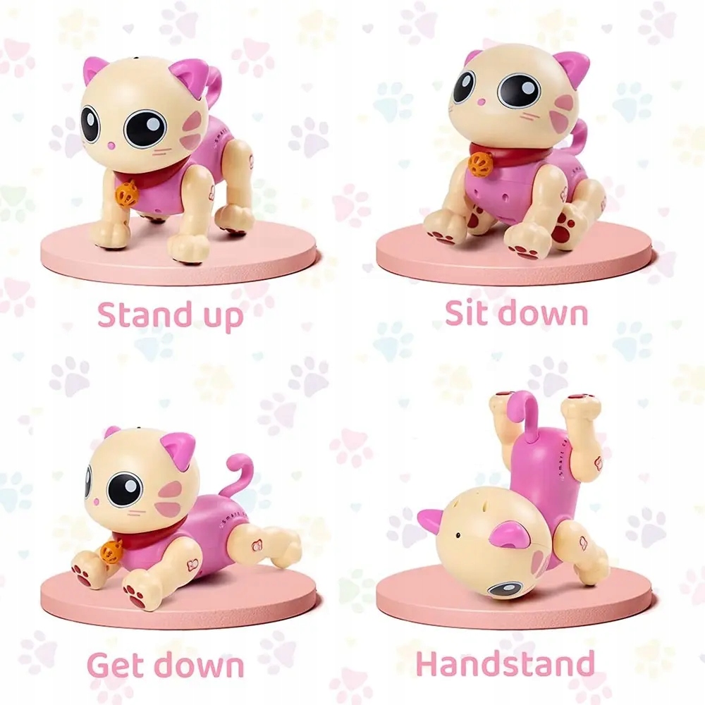Interaktivni robotski maček na daljinsko upravljanje z glasovnim daljinskim upravljalnikom izvaja trike za otroke