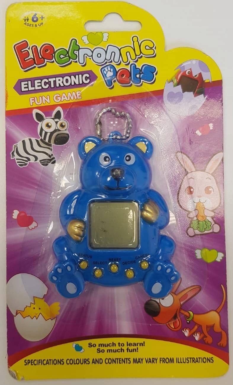 TAMAGOTCHI je fantastična elektronska igrača, ki govori o skrbi za hišnega ljubljenčka ! Izberite svojega ljubljenčka in skrbite zanj! Ko raste, se njegov videz spreminja. Če boste skrbeli zanj, bo zrasel v močnega ljubljenčka. Ko kliče, zahteva nego – poskrbite za njegove potrebe. Sicer bo oslabel.
