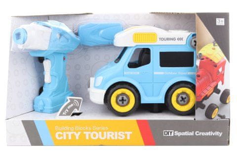 Vijak za daljinsko upravljanje prikolice. Prikolico lahko privijete s priloženim izvijačem ali vrtalnikom. Motor lahko odstranite iz vrtalnika in ga vstavite v prikolico, ki se nato s pomočjo upravljalnikov premika naprej in nazaj. Napajanje s 4 baterijami AA (niso vključene) in 3 baterijami AG13 (vključene). Dimenzije prikolice približno 18 × 13,5 × 8,5 cm. Dimenzije paketa približno 33,5 × 19,5 × 13,5 cm. Starost 3+