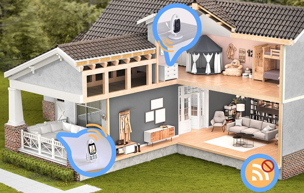V načinu VOX se varuškin zaslon samodejno izklopi zaradi varčevanja z energijo, vendar se takoj aktivira, ko zazna zvok. Domet do 260 metrov omogoča neovirano spremljanje od kjer koli v hiši, baterija s 750 mAh pa do 10 ur delovanja v varčnem načinu.