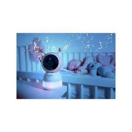 Del varuške je popolnoma vrtljiva kamera z ločljivostjo 3 Mpx. Ponuja širok zorni kot in možnost digitalne povečave slike. Zahvaljujoč nočnemu vidu z dometom 10 m ste prepričani o jasni sliki podnevi in ponoči, zato vam ni treba skrbeti, da bi izgubili vidni nadzor nad otrokom v temi.